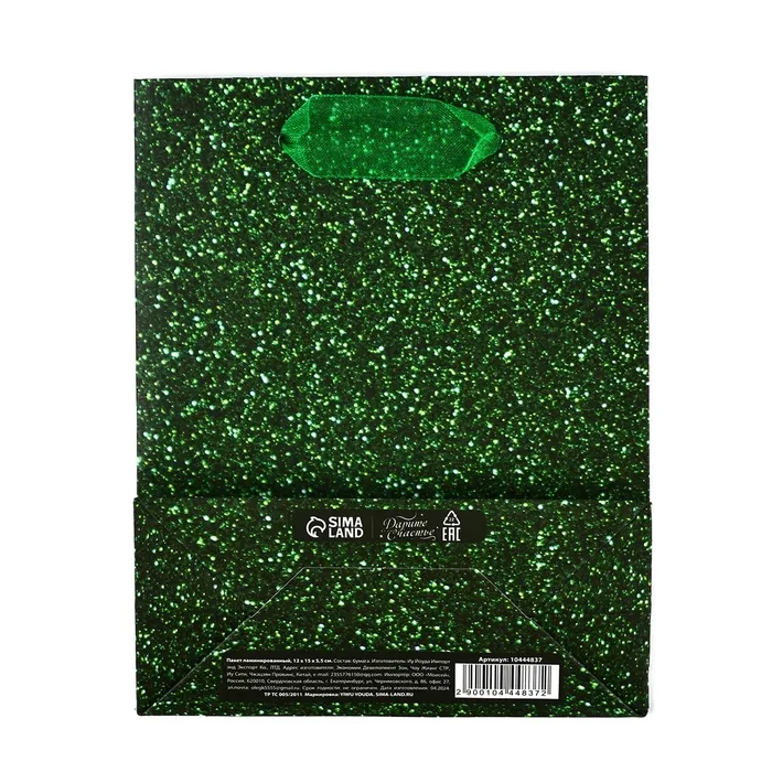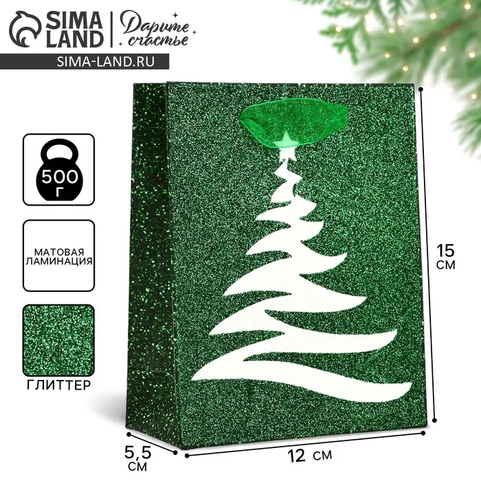 Пакет подарочный новогодний ламинированный «Ёлочка», глиттер, S 12 х 15 х 5.5 см — Характеристики