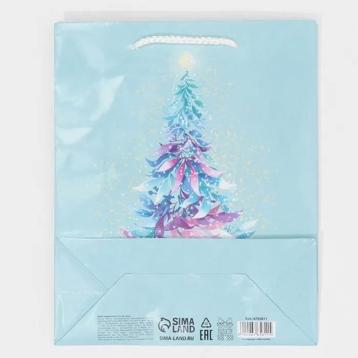 Пакет подарочный новогодний ламинированный «Ёлочка», ML 21 х 25 х 8 см — Характеристики