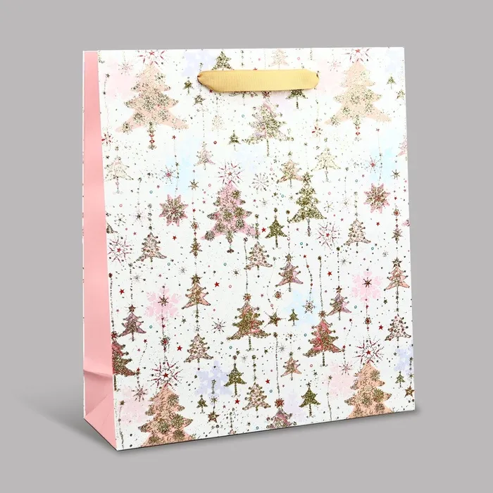 Пакет подарочный новогодний ламинированный «Ёлочки», M 30 х 26 х 9 см
