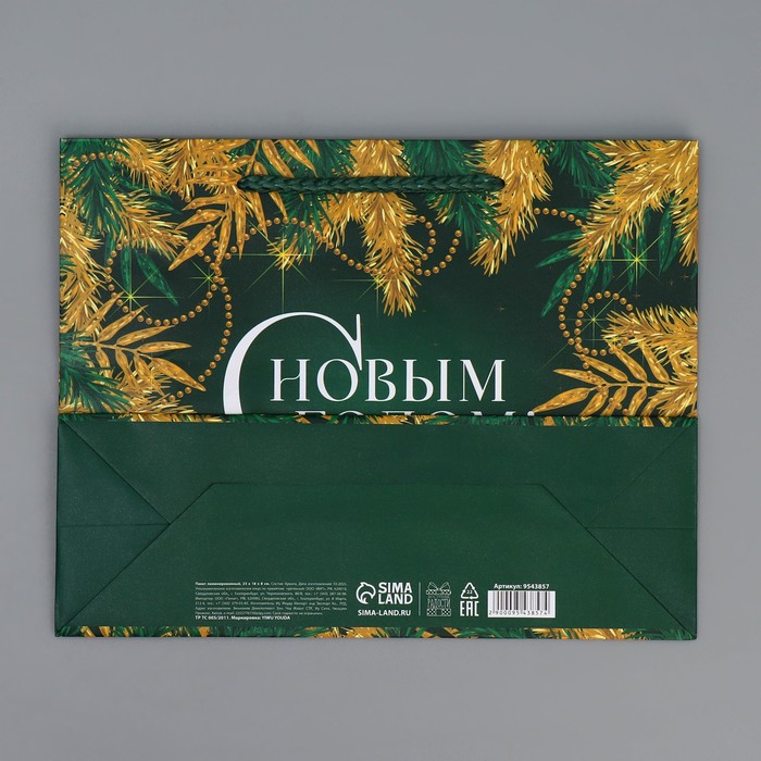 Пакет подарочный новогодний ламинированный «Изумруд», MS 23 х 18 х 8 см — Характеристики