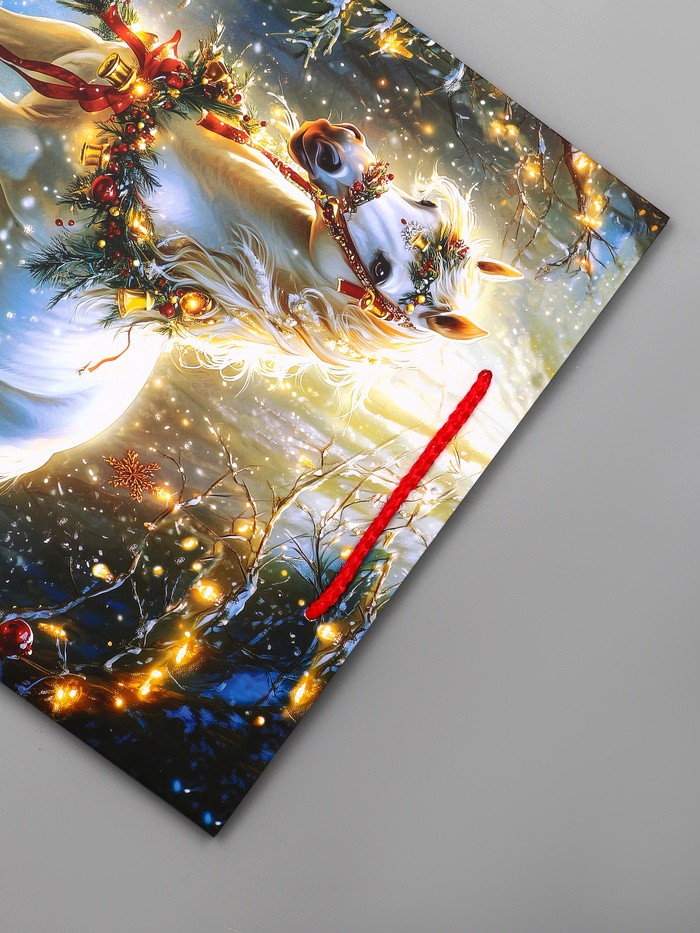 Идеальный выбор для подарков-впечатлений: Этот пакет особенно подходит для презентов, связанных с движением и активностью. Образ летящего коня напоминает о новогодних чудесах, сказочных путешествиях и зимних забавах. «Конь» — это упаковка для тех, кто дарит не просто вещи, а эмоции и воспоминания.