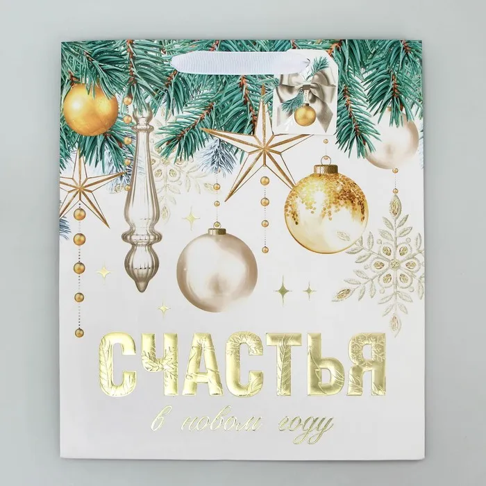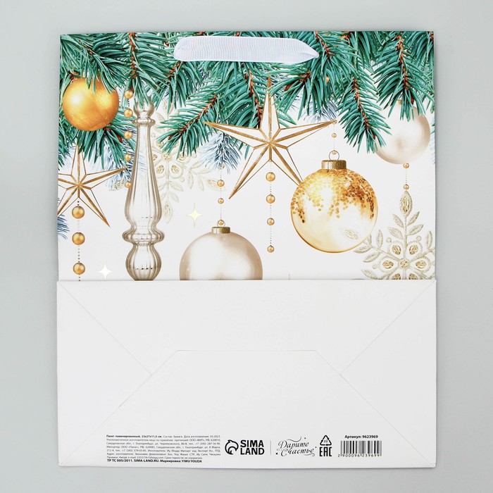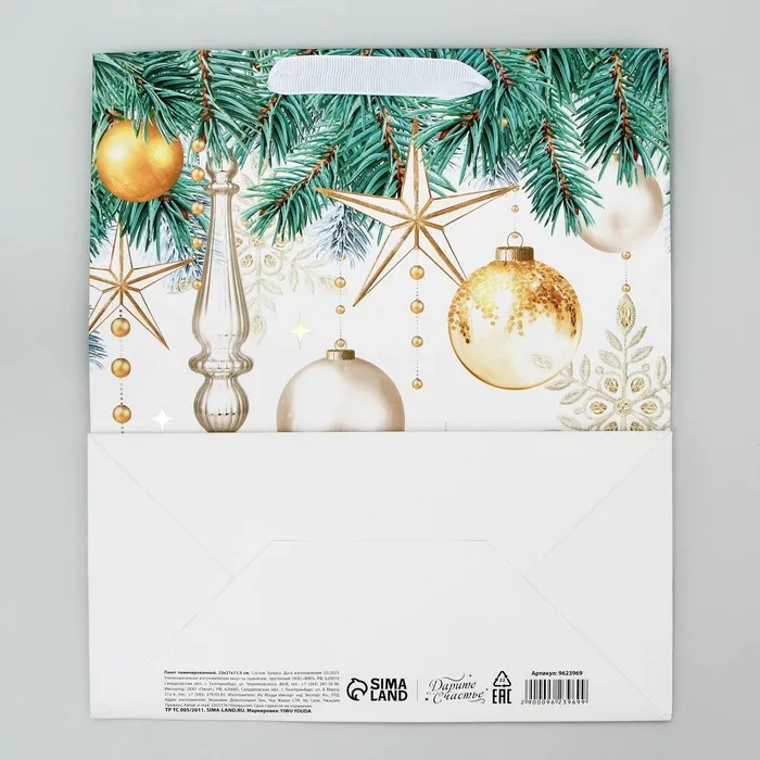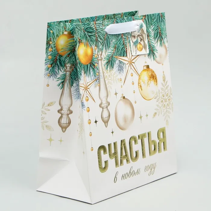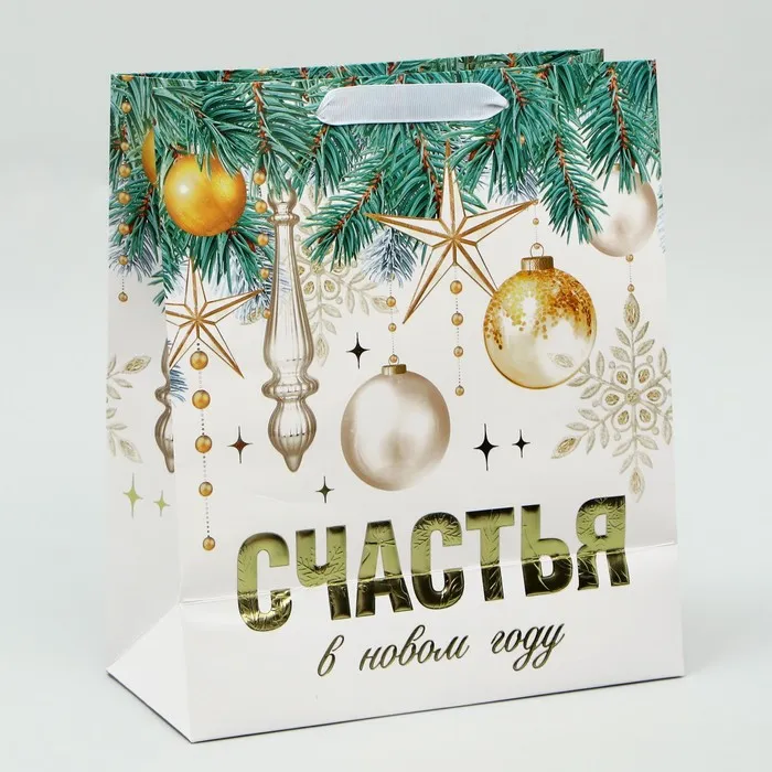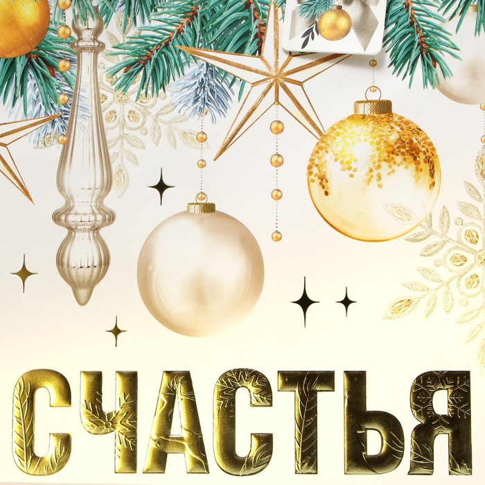 Пакет подарочный новогодний ламинированный, конгревное тиснение «Счастья в Новом году», ML 23 х 27 х 11.5 см — Характеристики