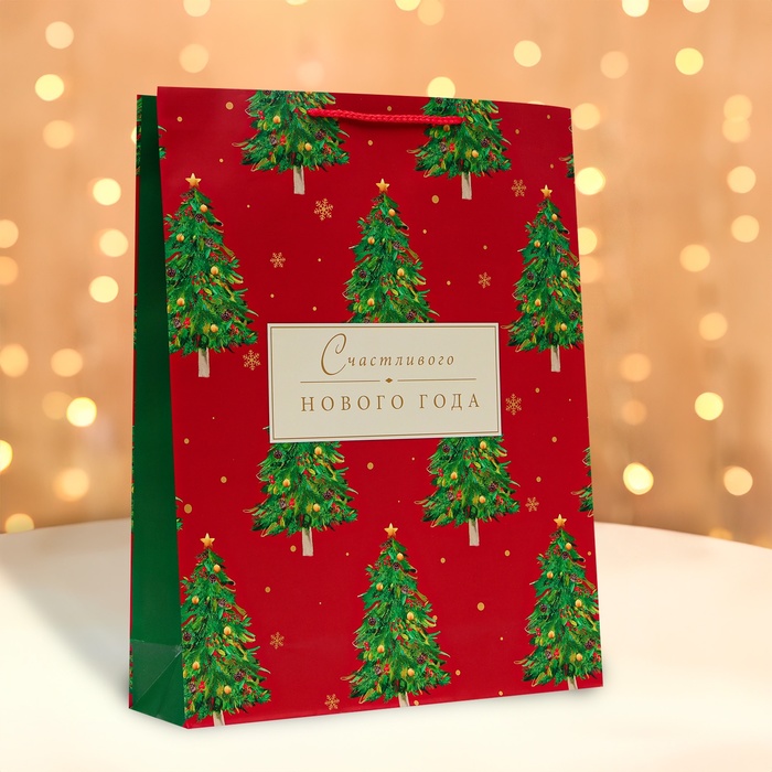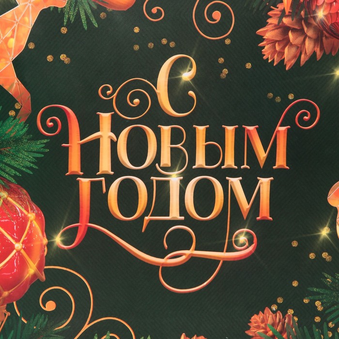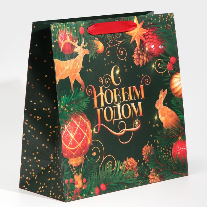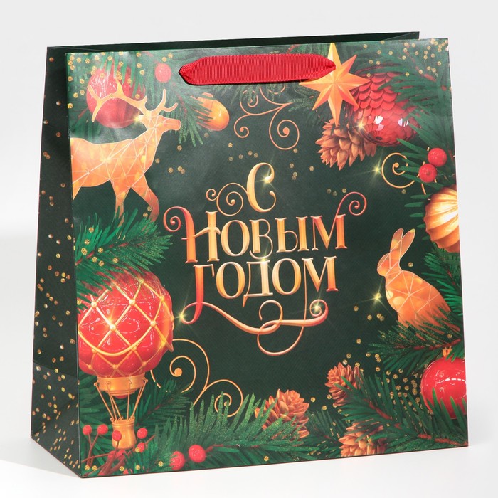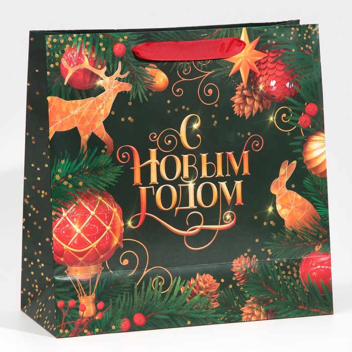 Пакет подарочный новогодний ламинированный квадратный «Gold», 30×30×12 см — Характеристики