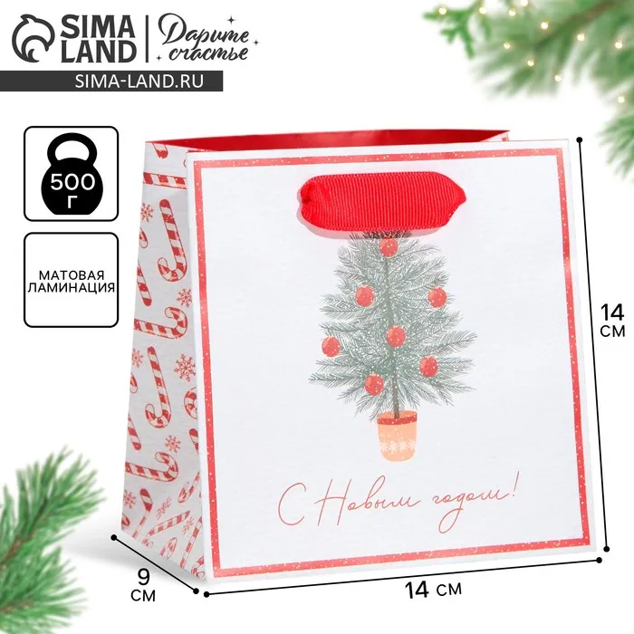 Пакет подарочный новогодний ламинированный квадратный «Новогодние сладости», 14 х 14 х 9 см — Характеристики