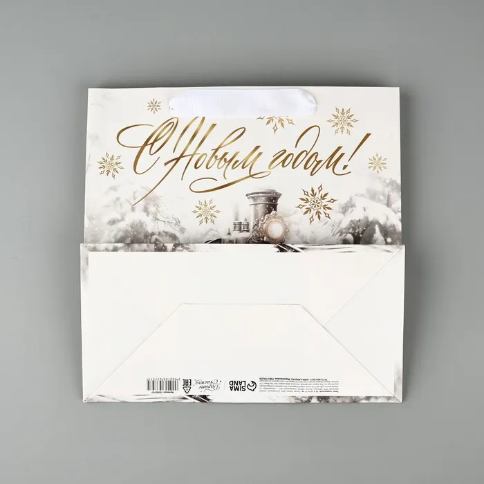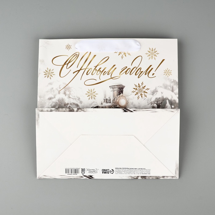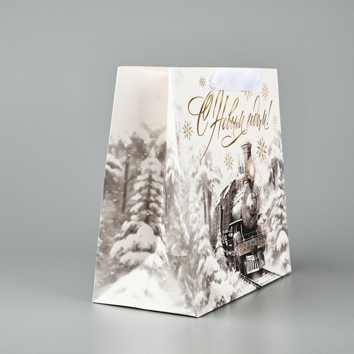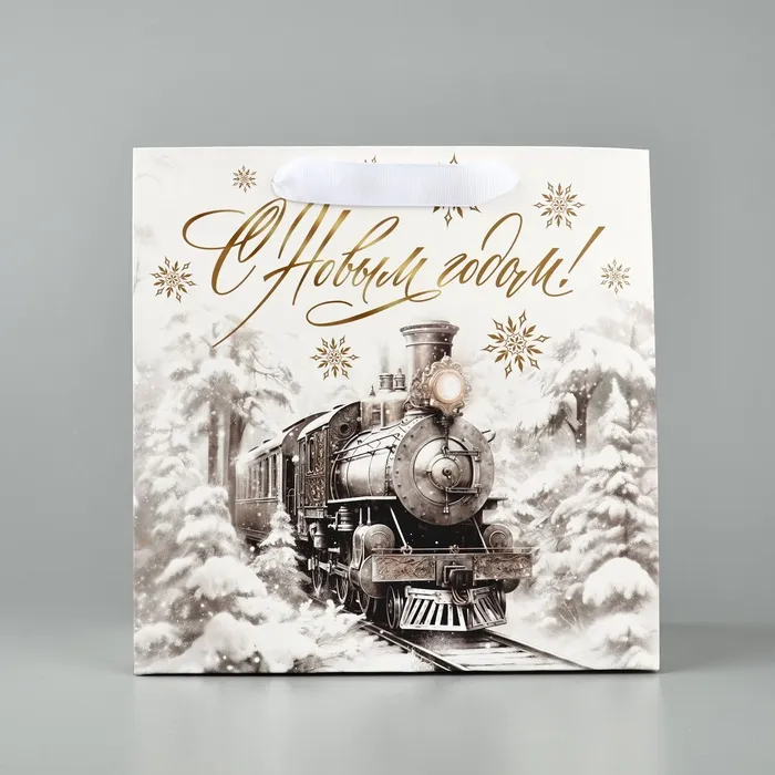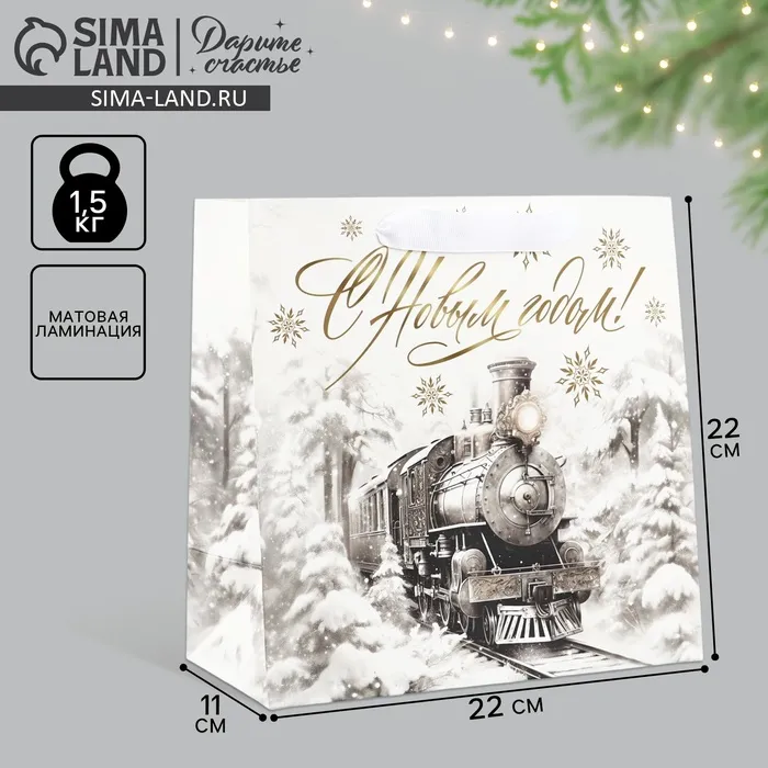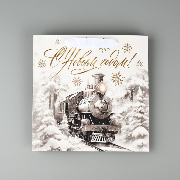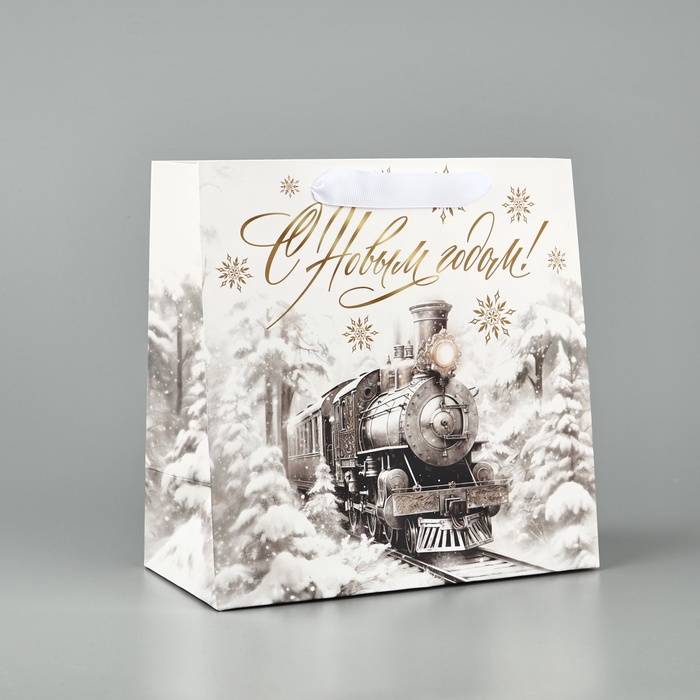 Пакет подарочный новогодний ламинированный квадратный «Новогодний поезд», 22 х 22 х 11 см — Характеристики