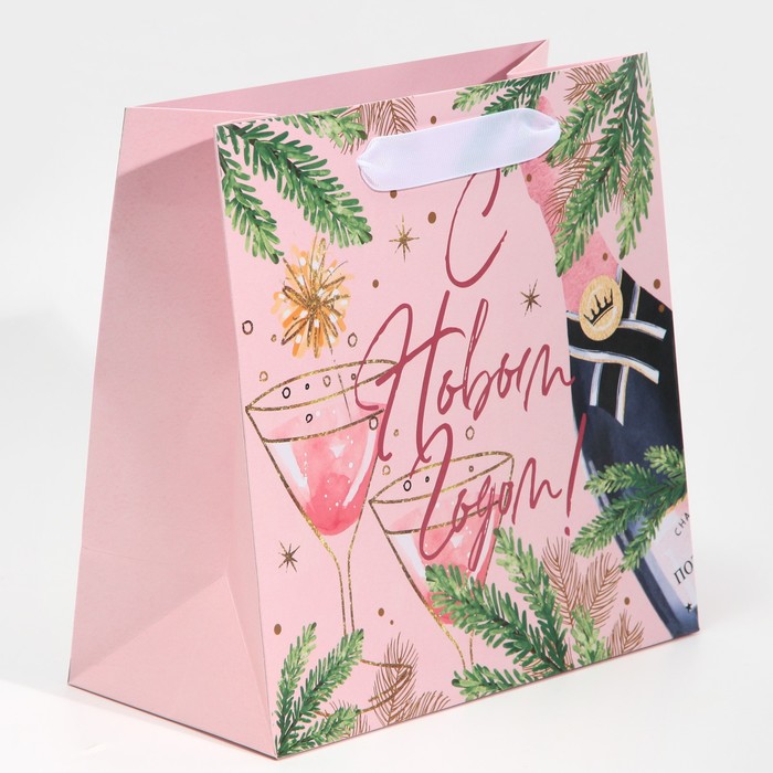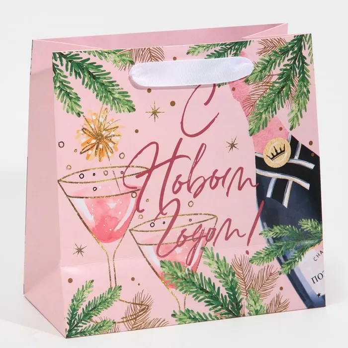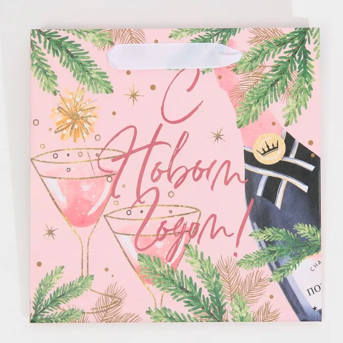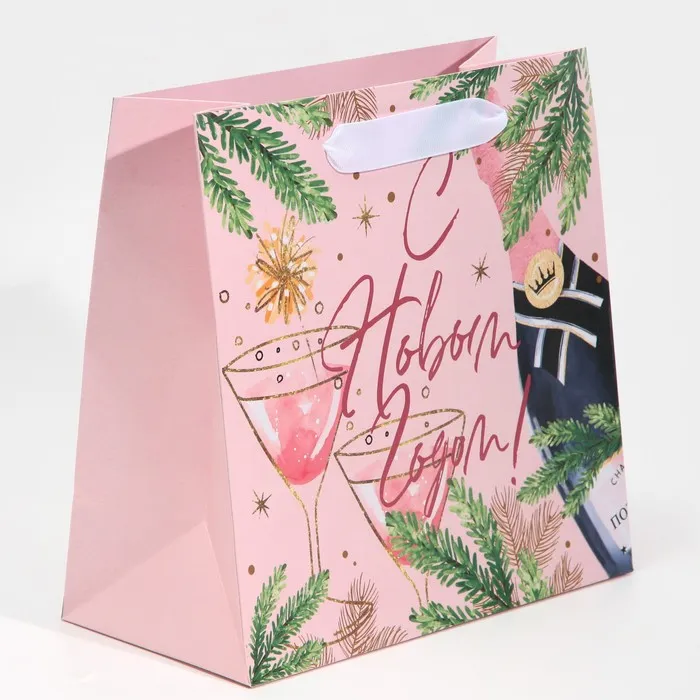 Пакет подарочный новогодний ламинированный квадратный «С новым годом», 22×22×11 см — Характеристики