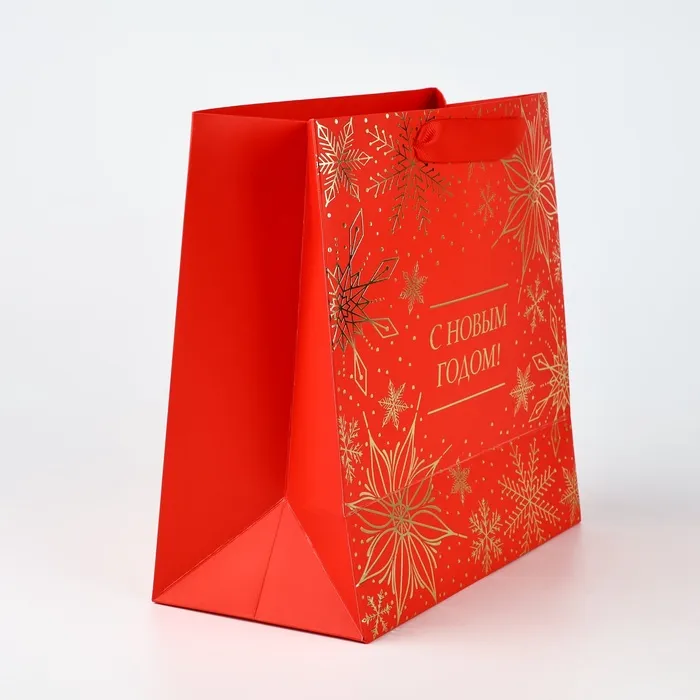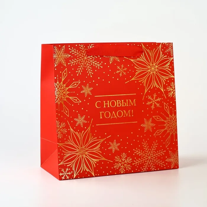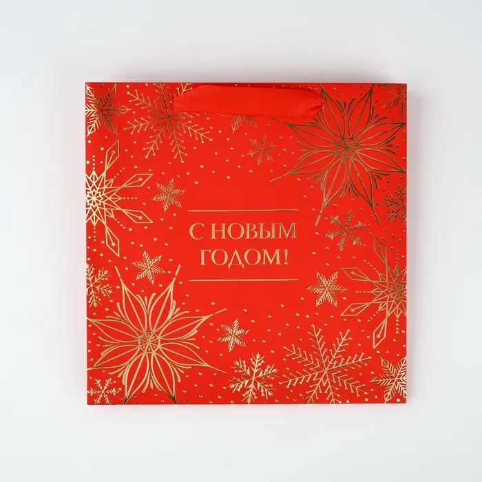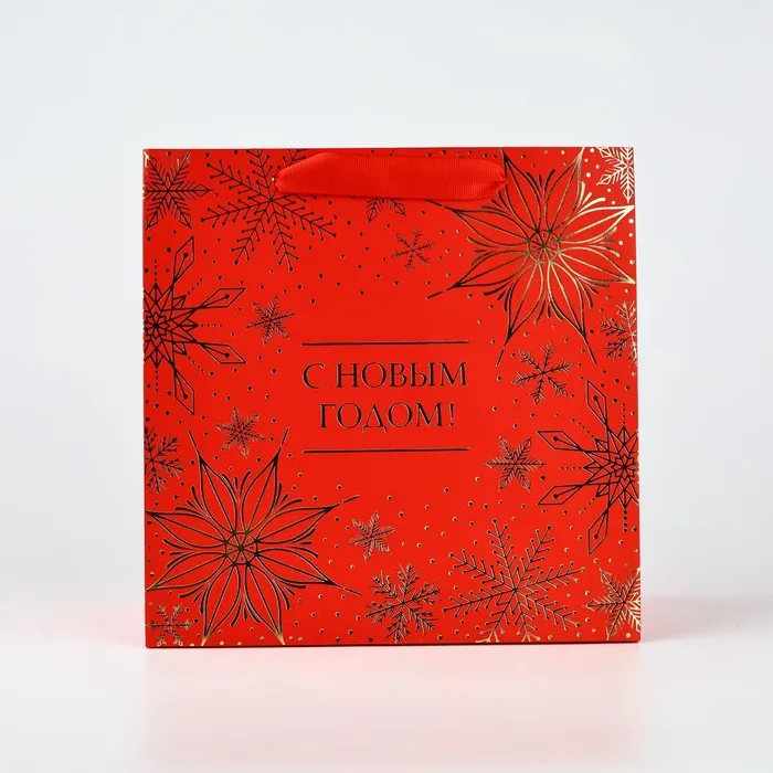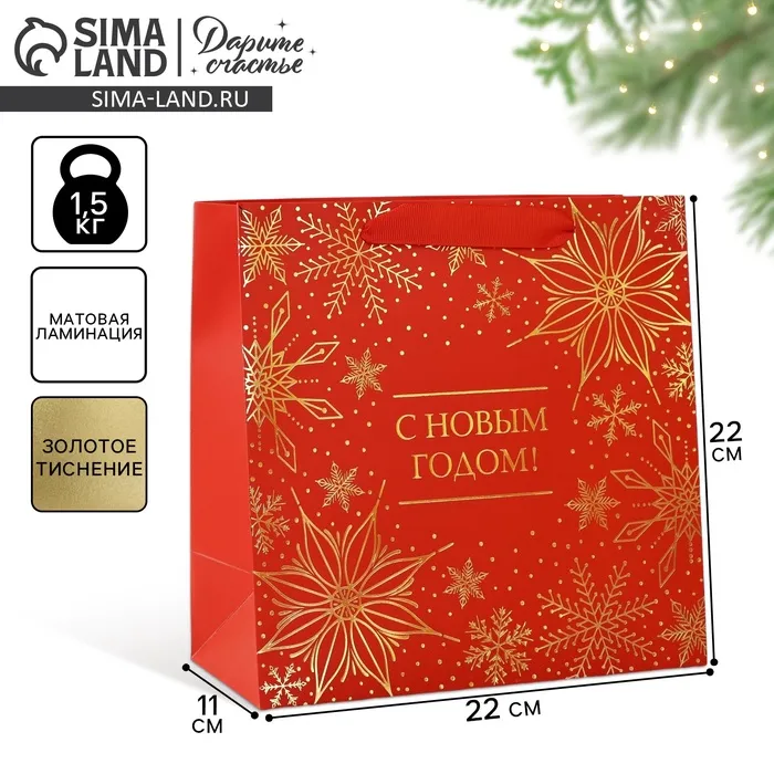 Пакет подарочный новогодний ламинированный квадратный «С Новым годом», тиснение 22 х 22 х 11 см — Характеристики