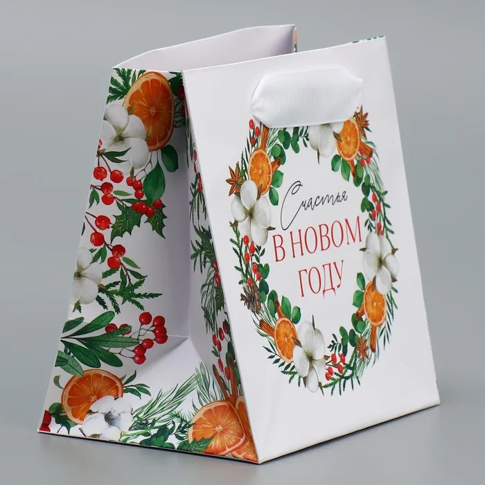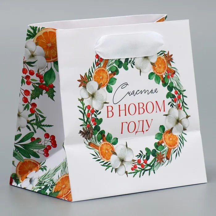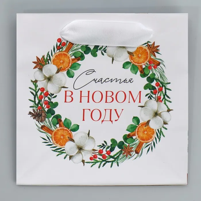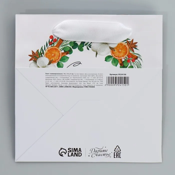 Пакет подарочный новогодний ламинированный квадратный «Счастье», 14 х 14 х 9 см — Характеристики