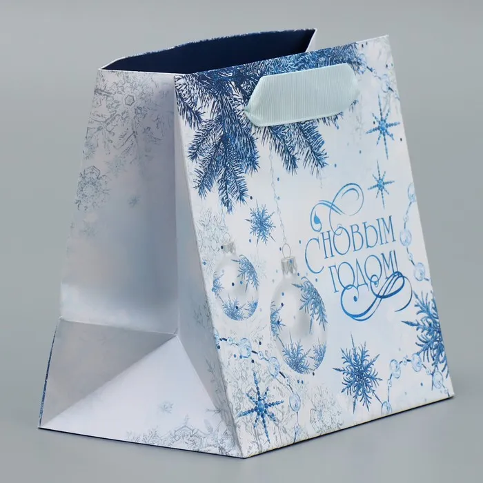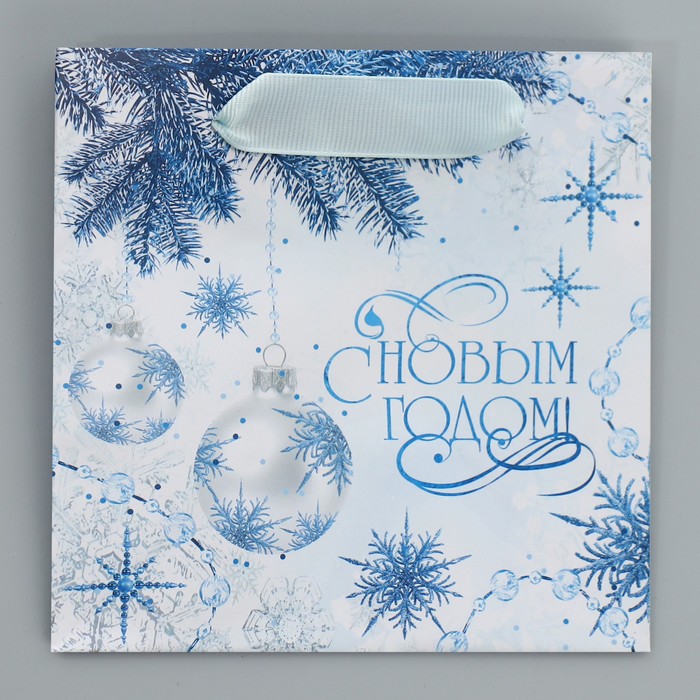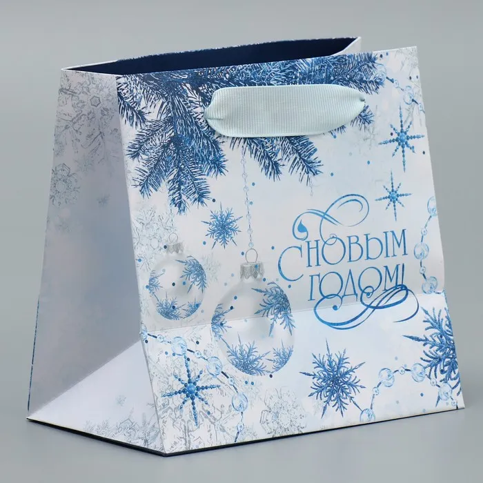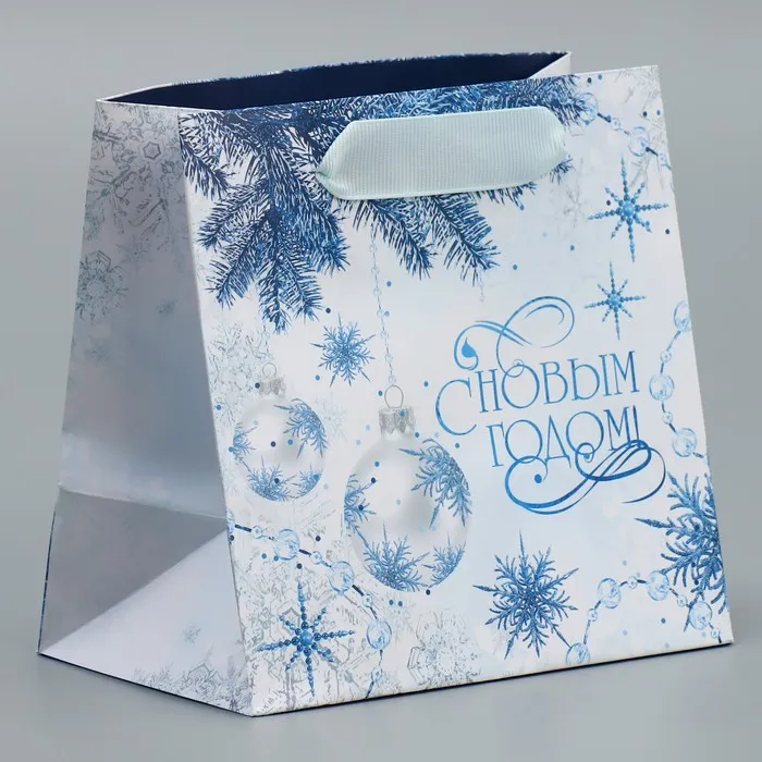 Пакет подарочный новогодний ламинированный квадратный «Снежинки», 14 х 14 х 9 см — Характеристики