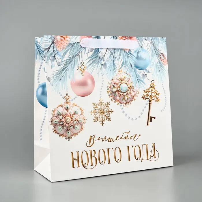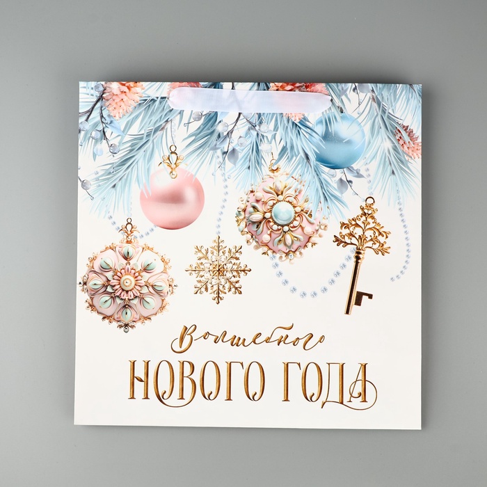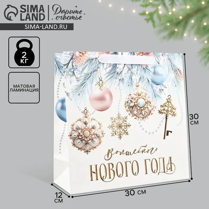 Пакет подарочный новогодний ламинированный квадратный «Волшебный праздник», 30 х 30 х 12 см — Характеристики