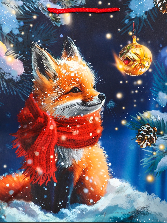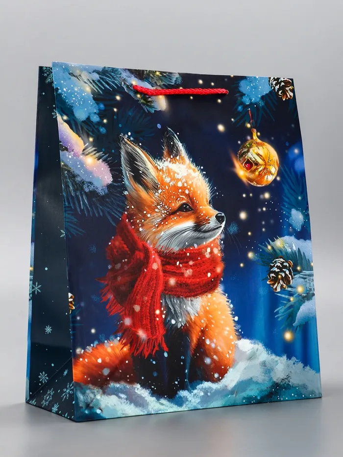 Пакет подарочный новогодний ламинированный, «Лиса» , 26×12×32 см — Характеристики