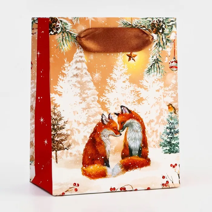 Пакет подарочный новогодний ламинированный «Лисята», люкс, 11.5×14.5×6.5 см — Характеристики