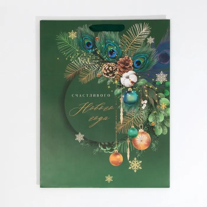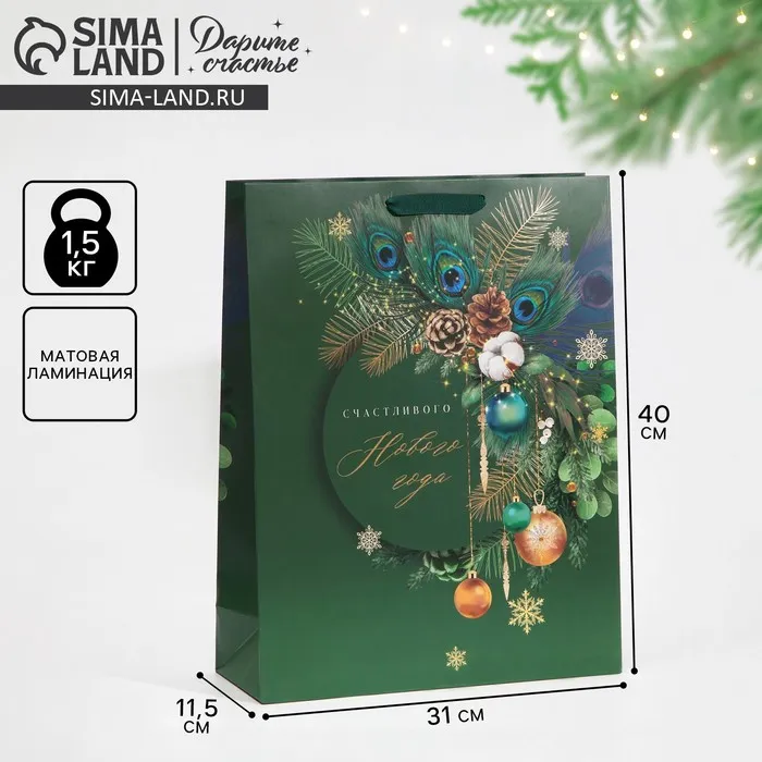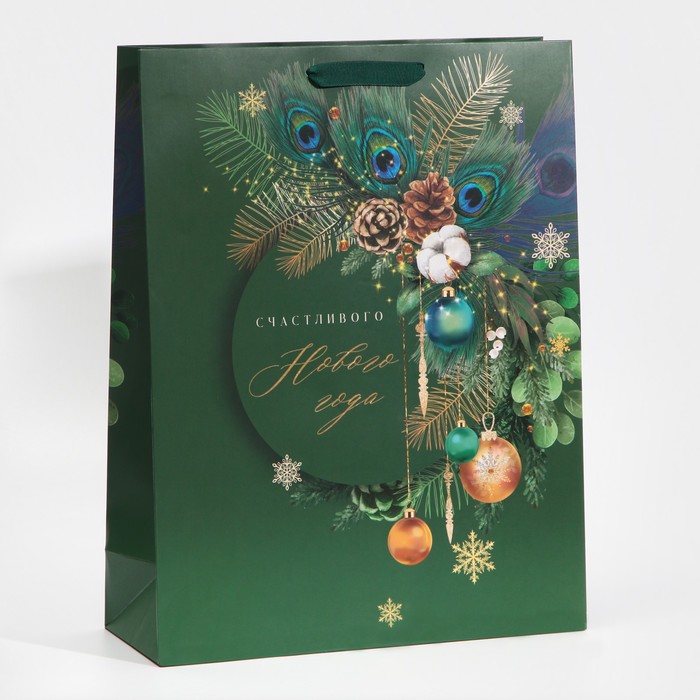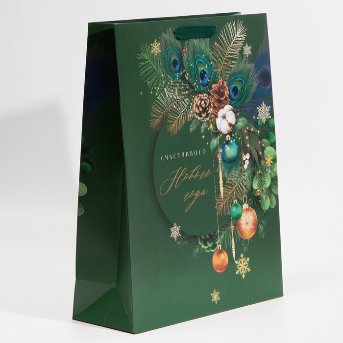 Пакет подарочный новогодний ламинированный «Малахит», L 31 х 40 х 11.5 см — Характеристики