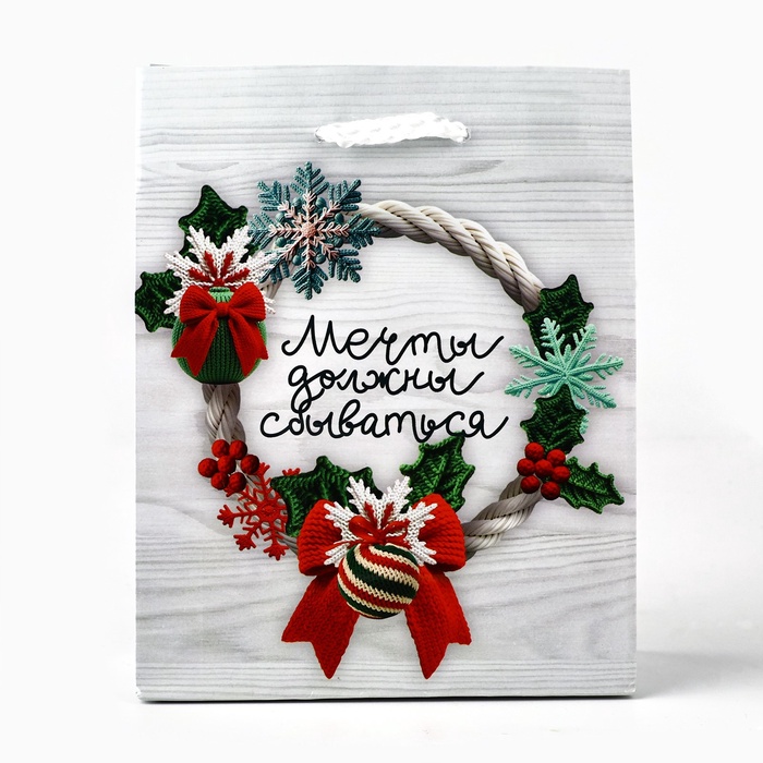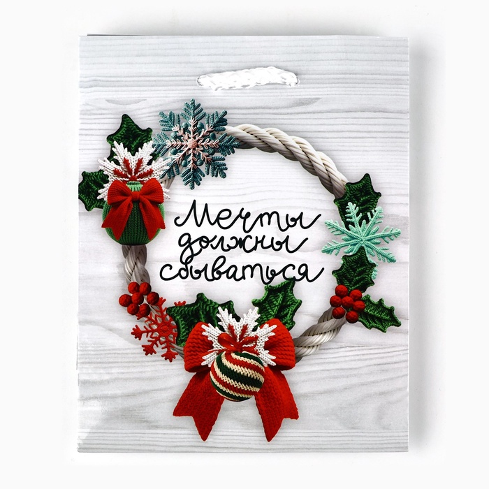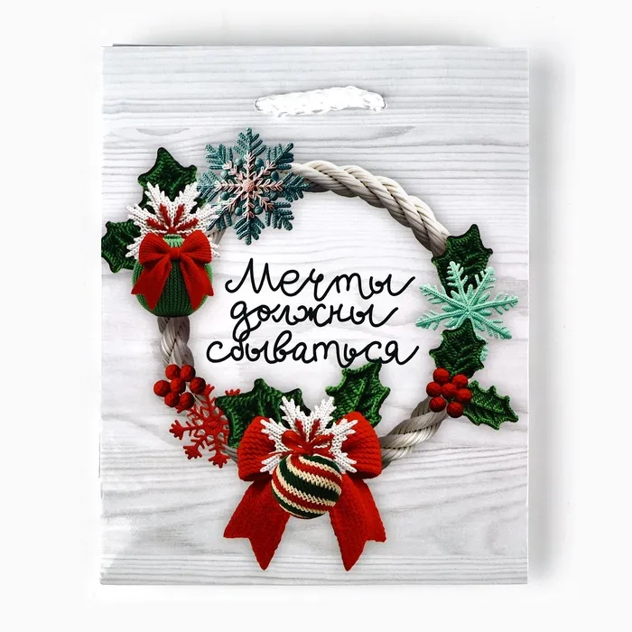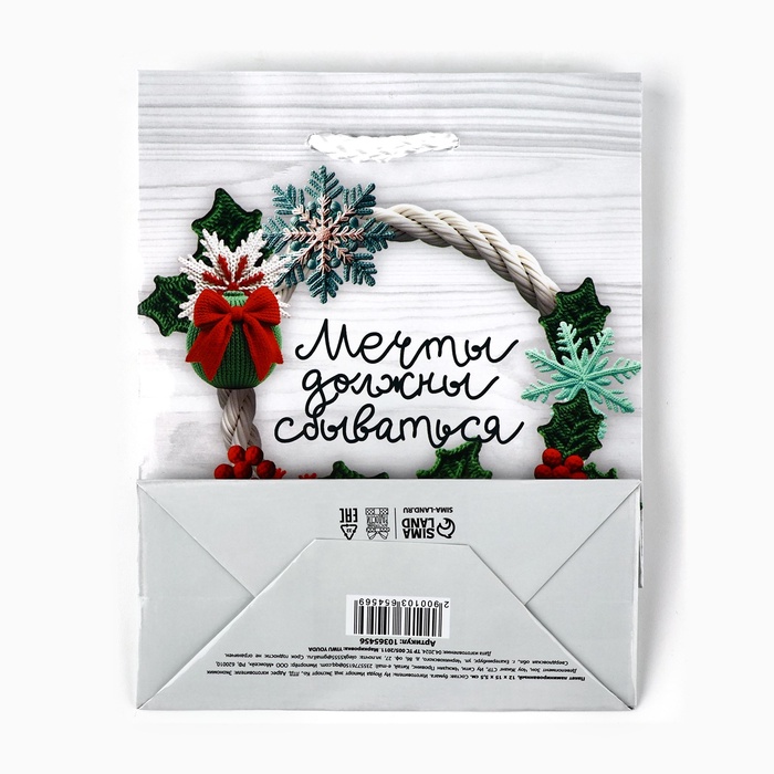 Пакет подарочный новогодний ламинированный «Мечты сбываются», S 12 х 15 х 5.5 см — Характеристики