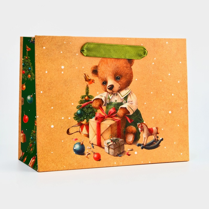 Пакет подарочный новогодний ламинированный «Милый мишка», 23×17.8×9.8 см — Характеристики