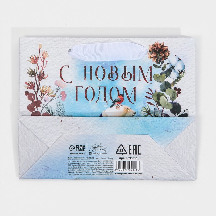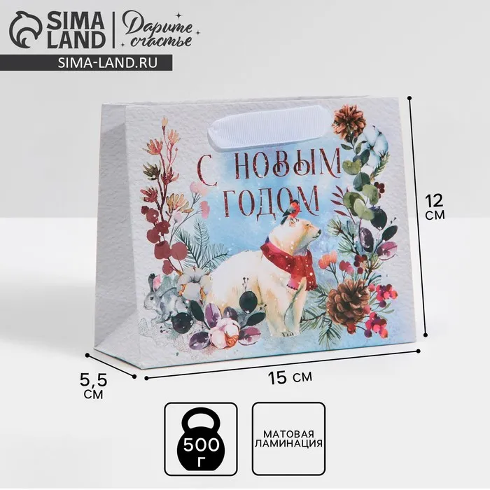 Пакет подарочный новогодний ламинированный «Мишка», 15 х 12 х 5.5 см — Характеристики