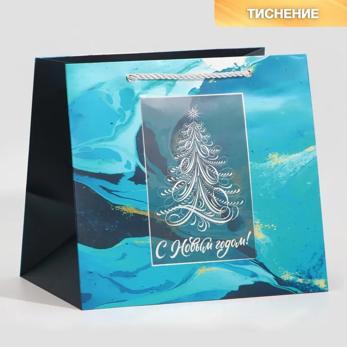 Пакет подарочный новогодний ламинированный «Мрамор», 25 х 23 х 18 см — Характеристики