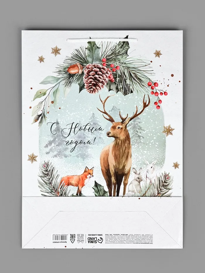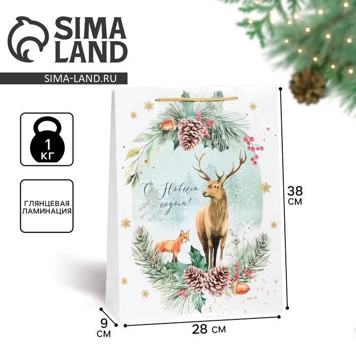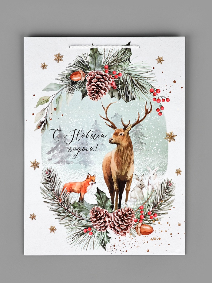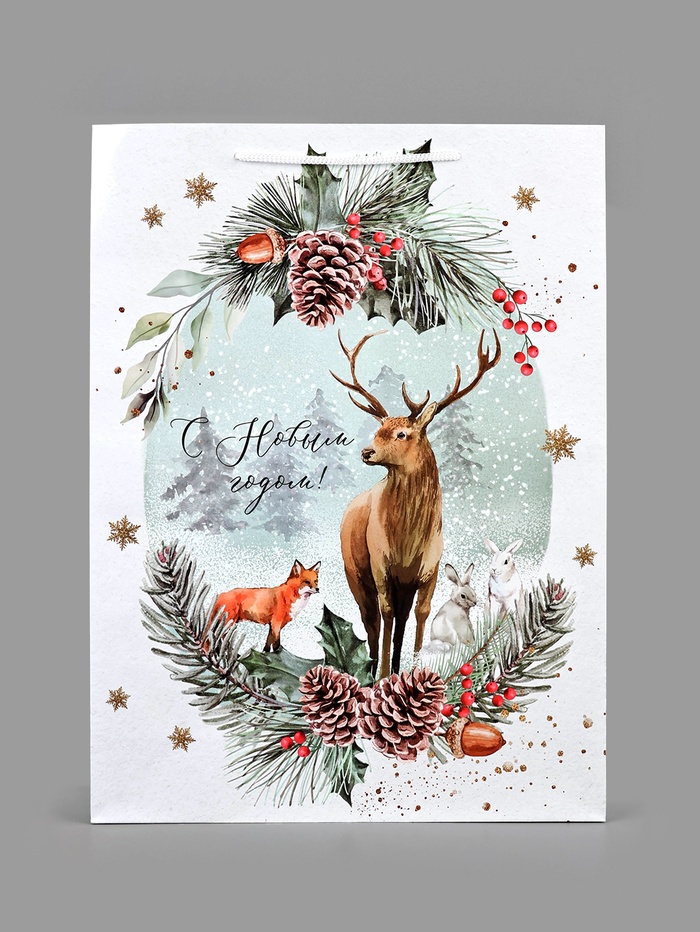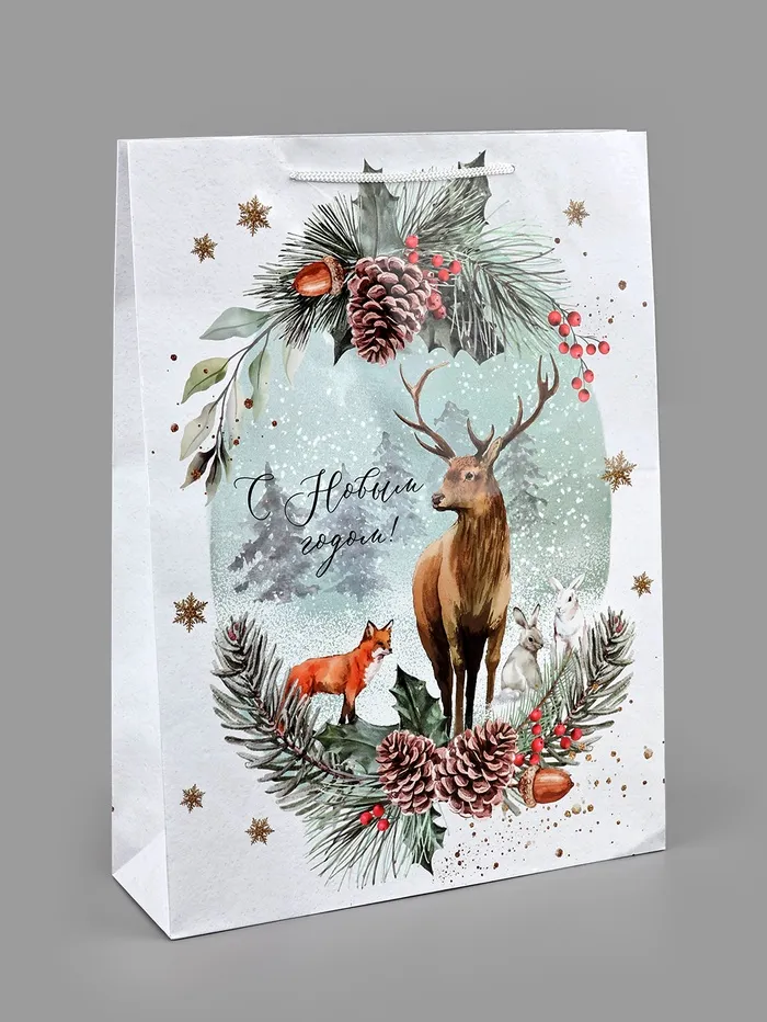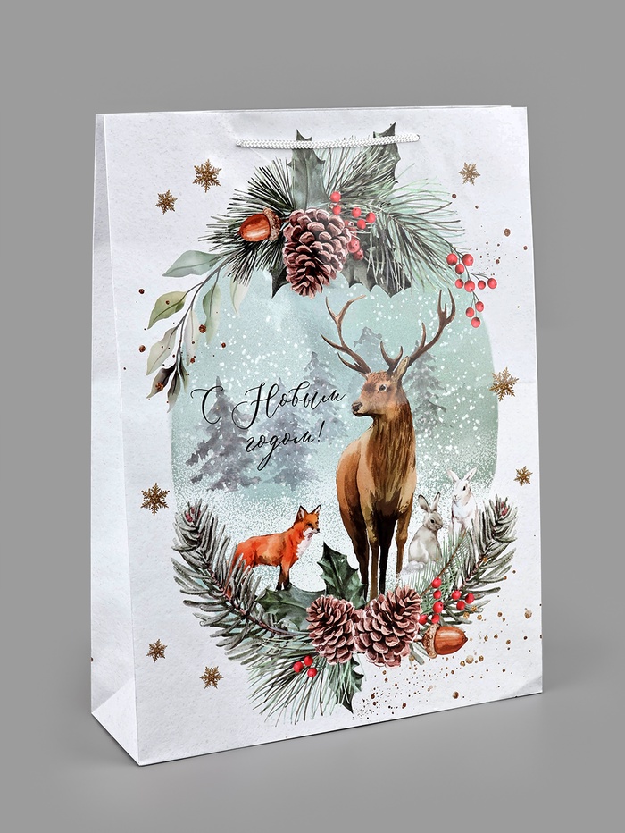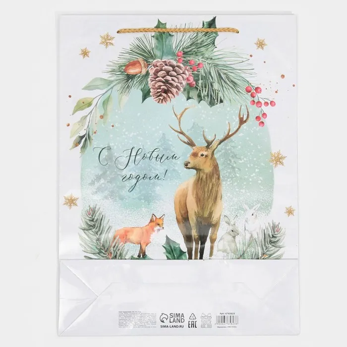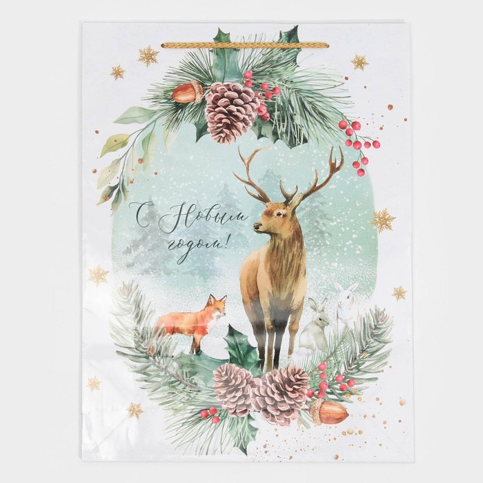 Пакет подарочный новогодний ламинированный «На лесной опушке», L 28 х 38 х 9 см — Характеристики