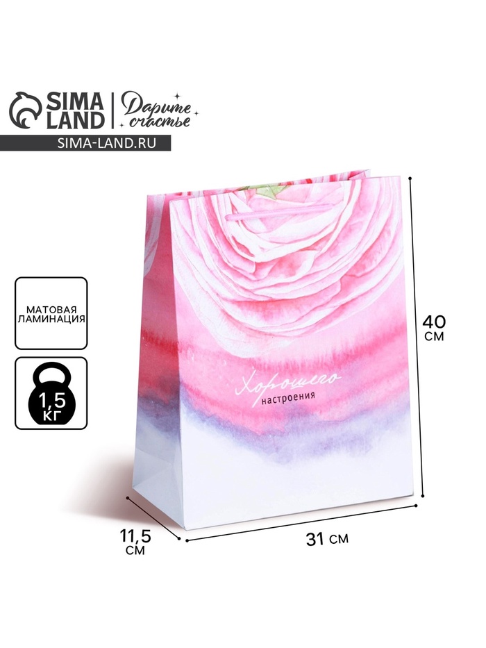 - Удобство в каждой детали: Прочные шнуры-ручки легко надеваются на руку. Они не врезаются в пальцы и делают даже габаритный подарок удобным для переноски.