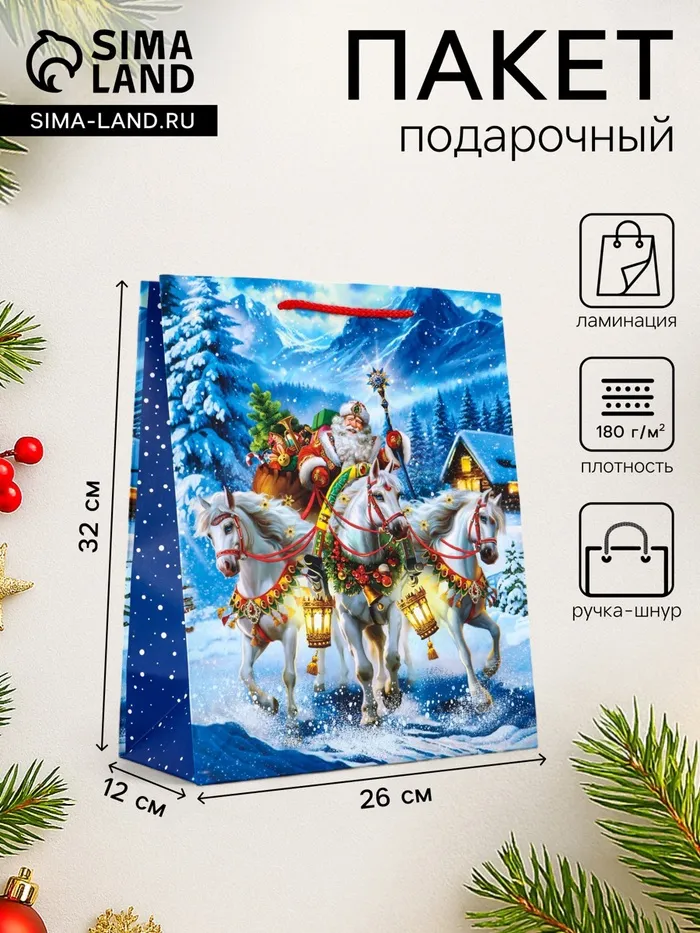 Пакет подарочный новогодний ламинированный, «На встречу Новому Году» , 26×12×32 см — Характеристики