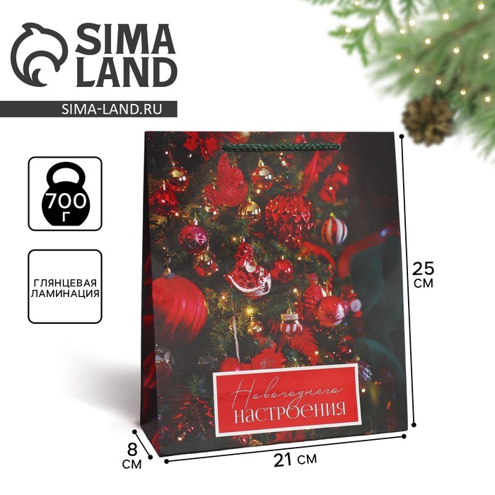 Пакет подарочный новогодний ламинированный «Новогоднее настроение», ML 21 х 25 х 8 см — Характеристики