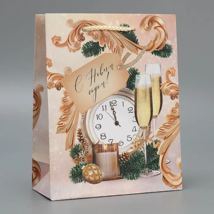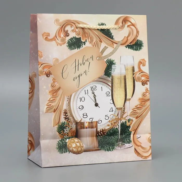 Пакет подарочный новогодний ламинированный «Новогоднее время», MS 18 х 23 х 8 см — Характеристики