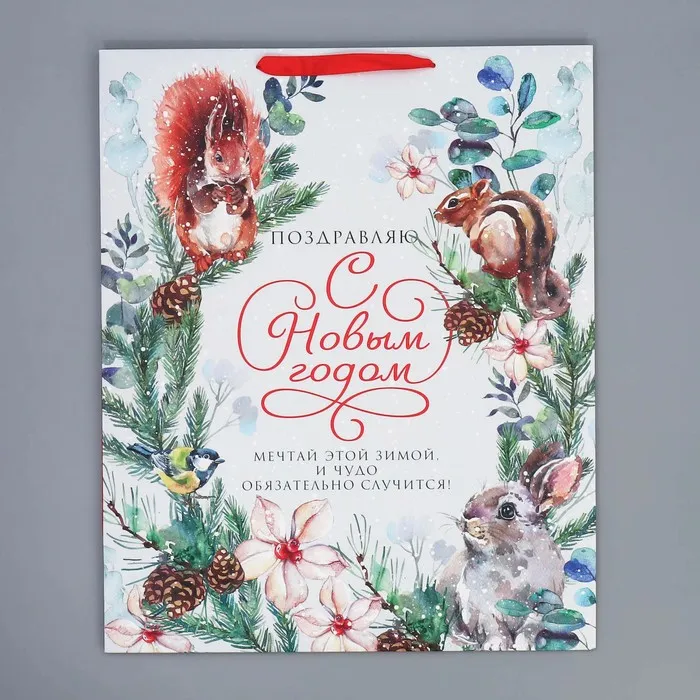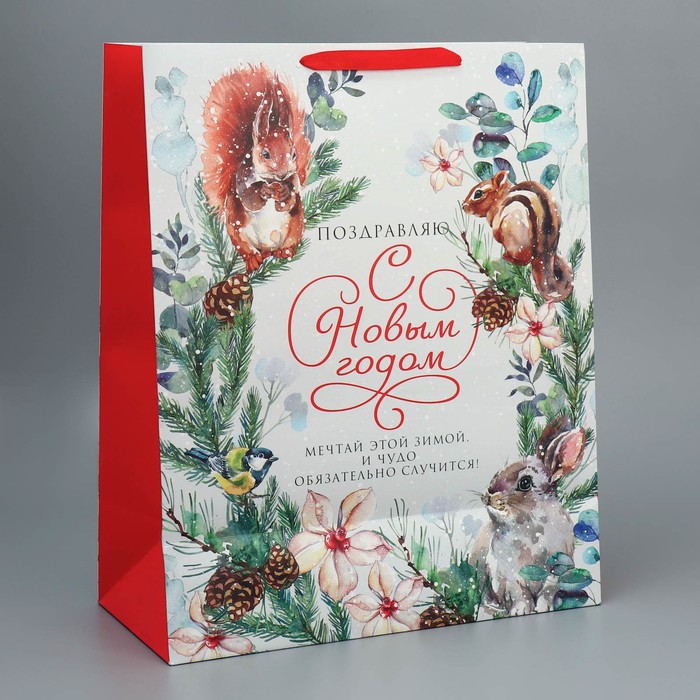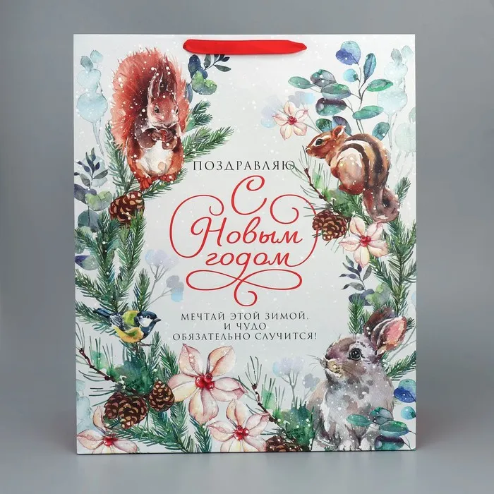 Пакет подарочный новогодний ламинированный «Новогодняя акварель», XL 40 х 49 х 19 см — Характеристики