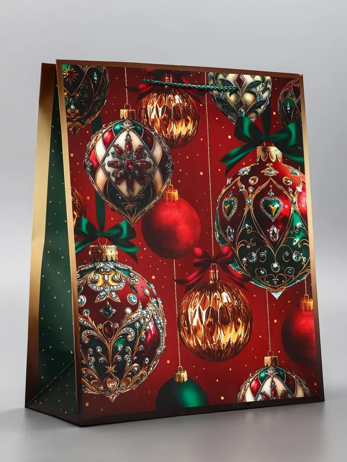 Универсальное праздничное решение: Этот пакет подходит для подарков любого формата — от корпоративных презентов до семейных сюрпризов. Традиционный дизайн делает его безопасным выбором, который точно понравится получателю. Большой подарочный пакет «Новогодняя пора» — это надежный способ красиво упаковать значительный подарок, сохранив при этом атмосферу традиционного зимнего праздника.