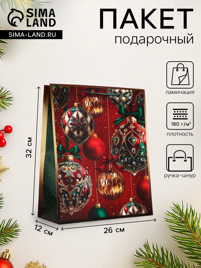 Пакет подарочный новогодний ламинированный, «Новогодняя пора» , 26×12×32 см — Характеристики