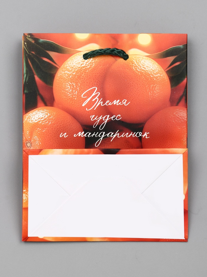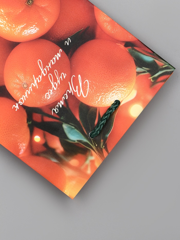 Идеальный выбор для сладких подарков: Этот пакет особенно подходит для презентов, связанных с угощениями и сладостями. Образ мандаринов напоминает о детском ожидании праздника, семейных традициях и том особом аромате, который ассоциируется с Новым годом. «Новогодние мандарины» — это упаковка, которая сама по себе вызывает ощущение праздника.