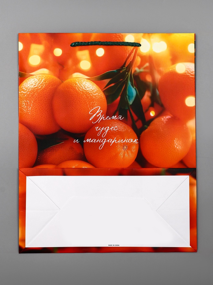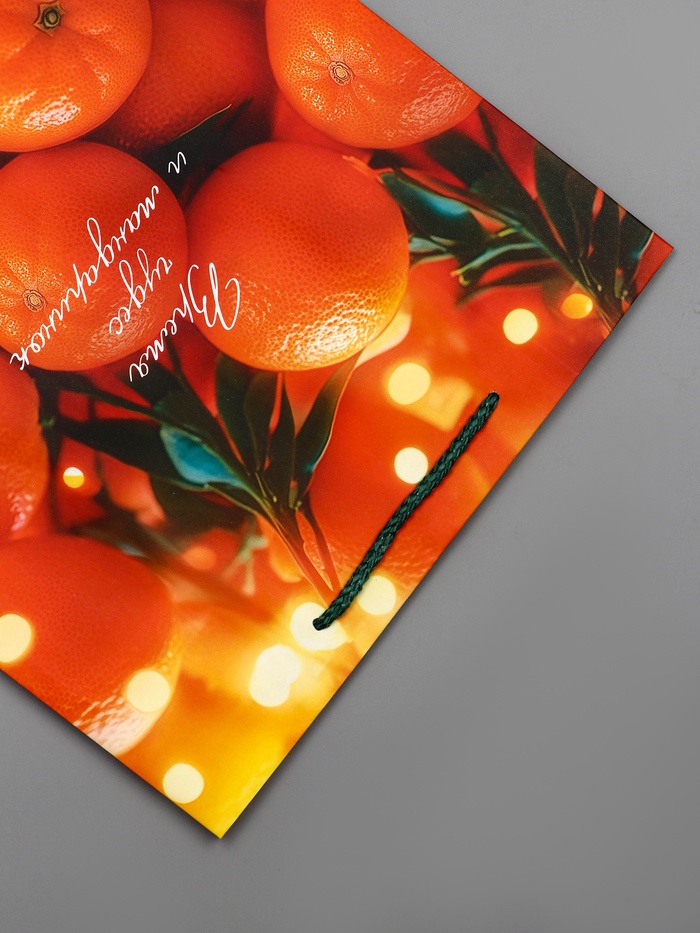 Пакет подарочный новогодний ламинированный, «Новогодние мандарины» , 26×12×32 см — Характеристики