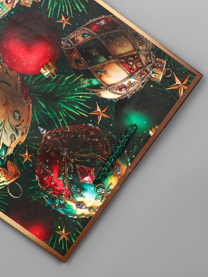 • Сдержанный праздничный дизайн: Сочетание классических новогодних цветов и символов делает пакет уместным для подарка как женщине, так и мужчине. Дизайн подходит для корпоративных и семейных праздников.
