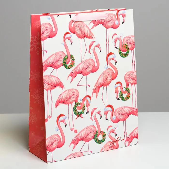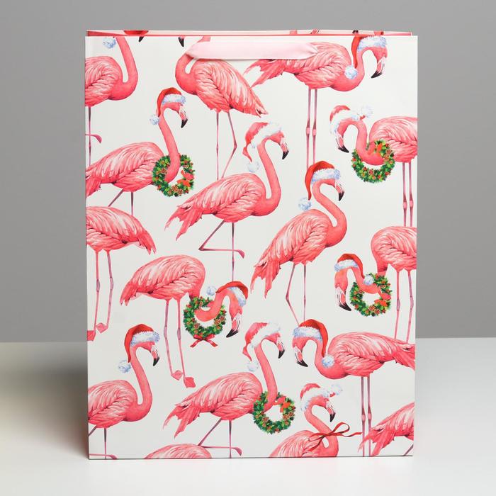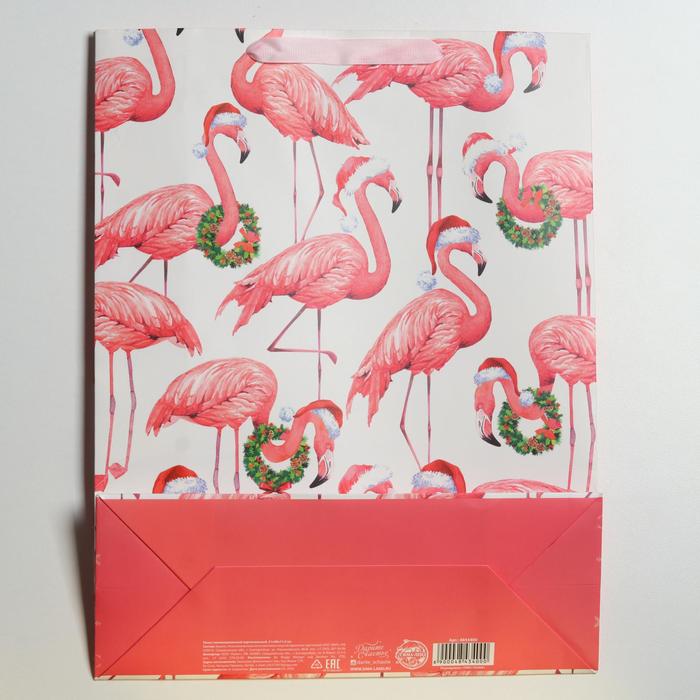 Пакет подарочный новогодний ламинированный «Новогодний фламинго», L 31 х 40 х 11.5 см — Характеристики