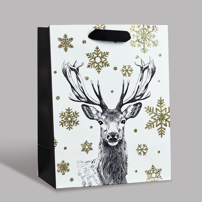 Пакет подарочный новогодний ламинированный «Новогодний лес», MS 23 x 18 х 10 см