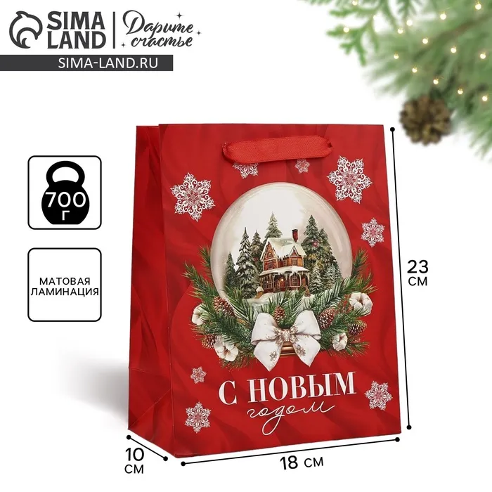 Пакет подарочный новогодний ламинированный «Новогодний шар», MS 18 х 23 х 10 см — Характеристики