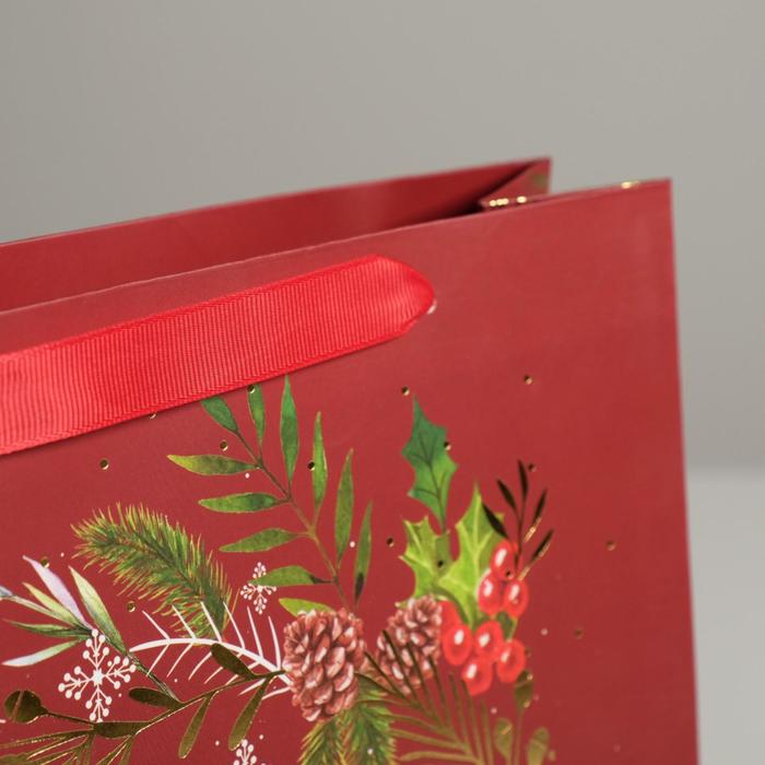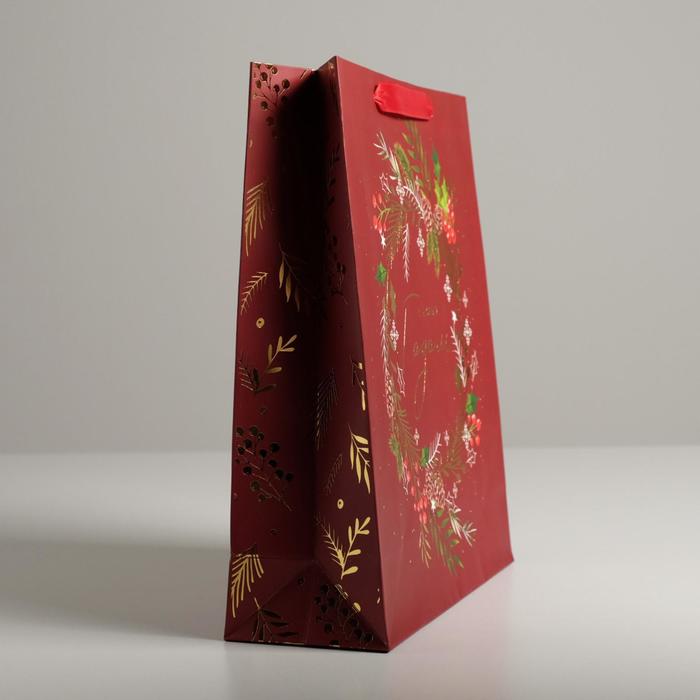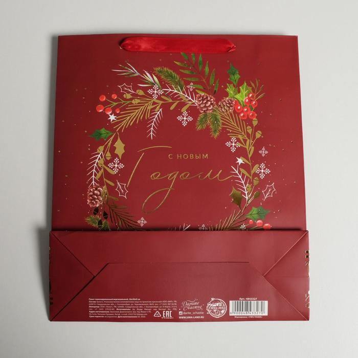 Пакет подарочный новогодний ламинированный «Новогодний веночек», M 26 х 30 х 9 см — Характеристики
