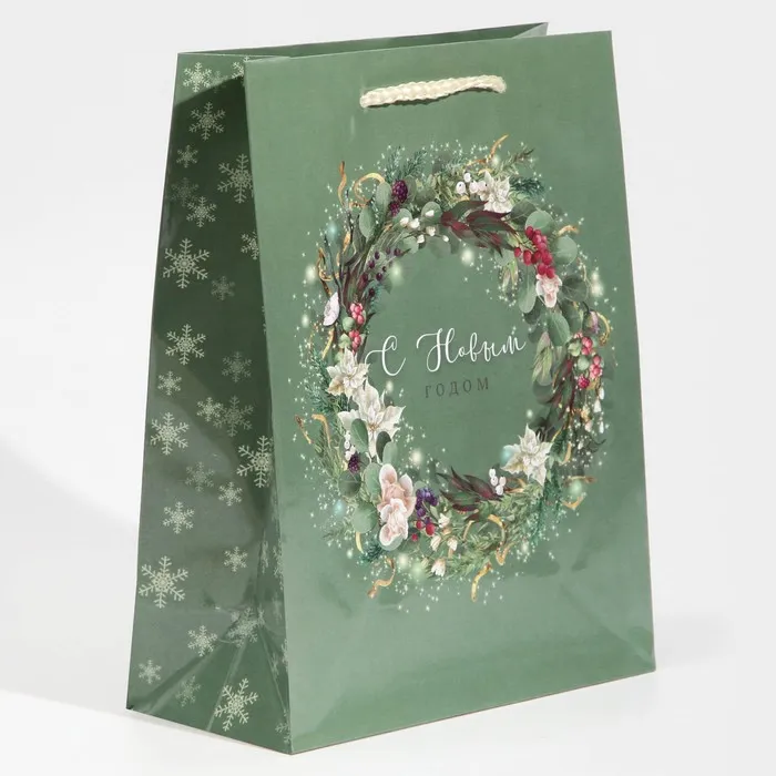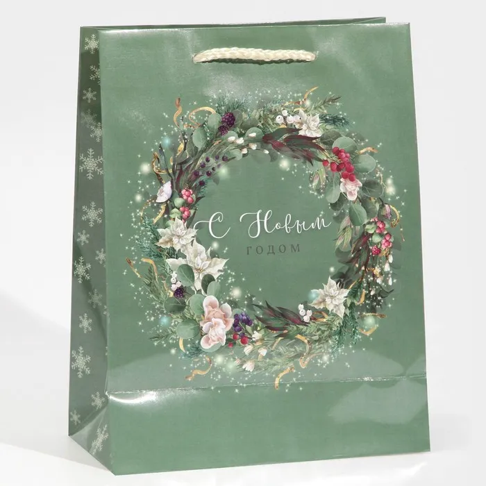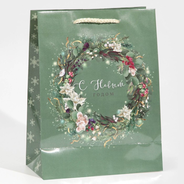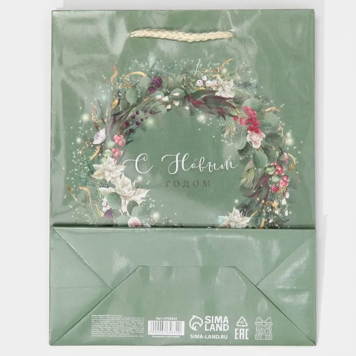 Пакет подарочный новогодний ламинированный «Новогодний венок», MS 18 х 23 х 8 см — Характеристики