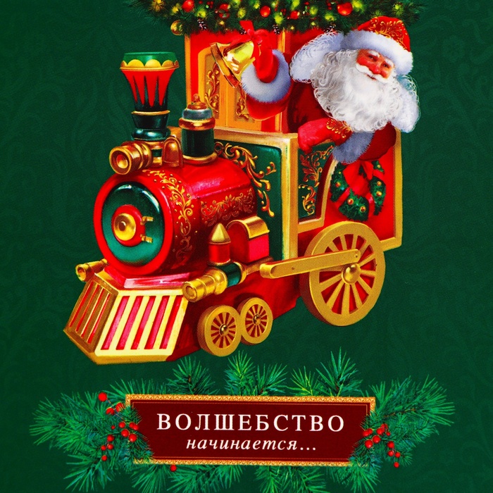 Пакет подарочный новогодний ламинированный «Паровоз», люкс, 11.5×14.5×6.5 см — Характеристики