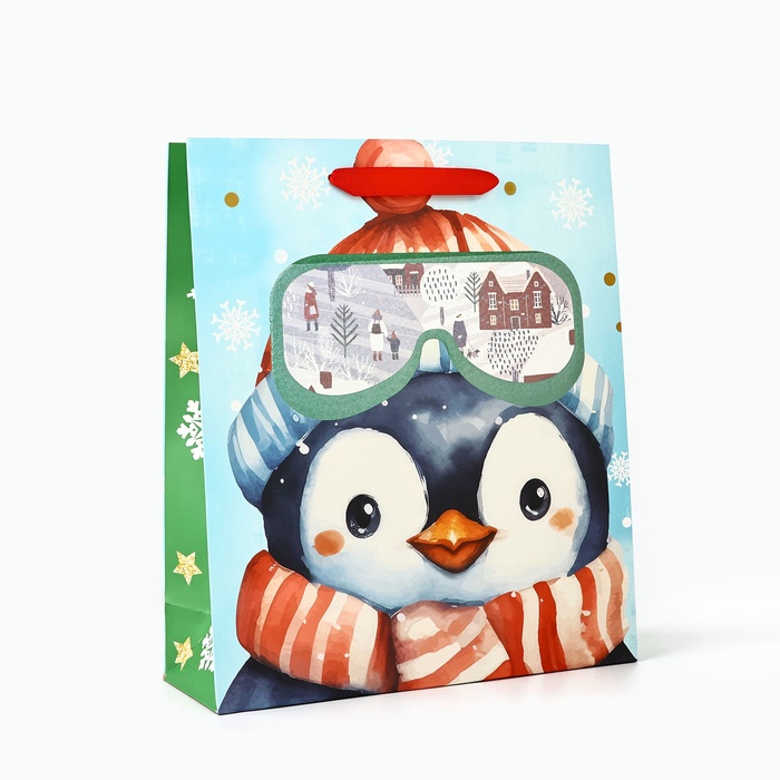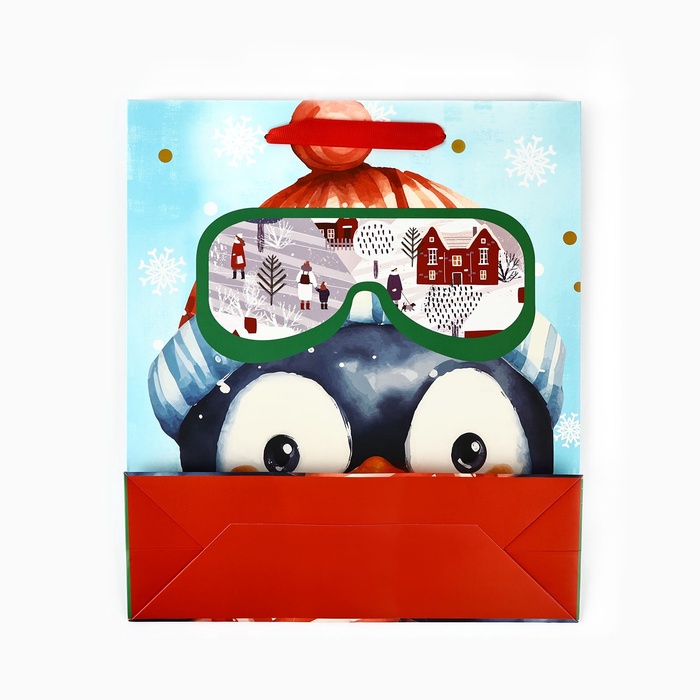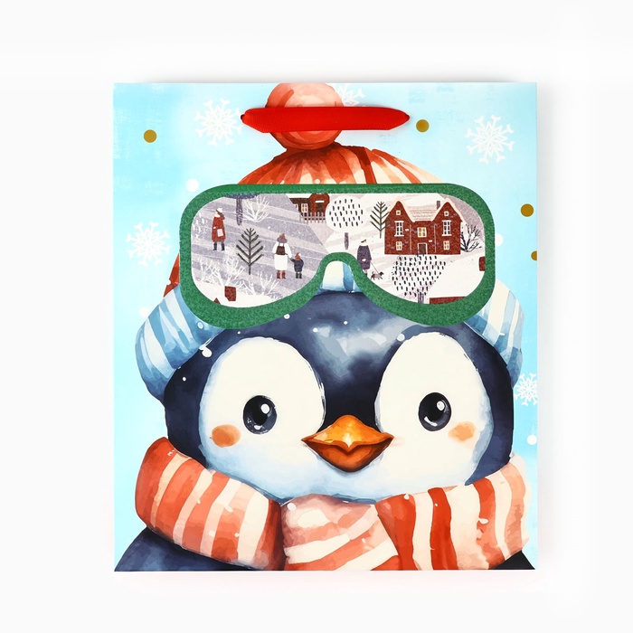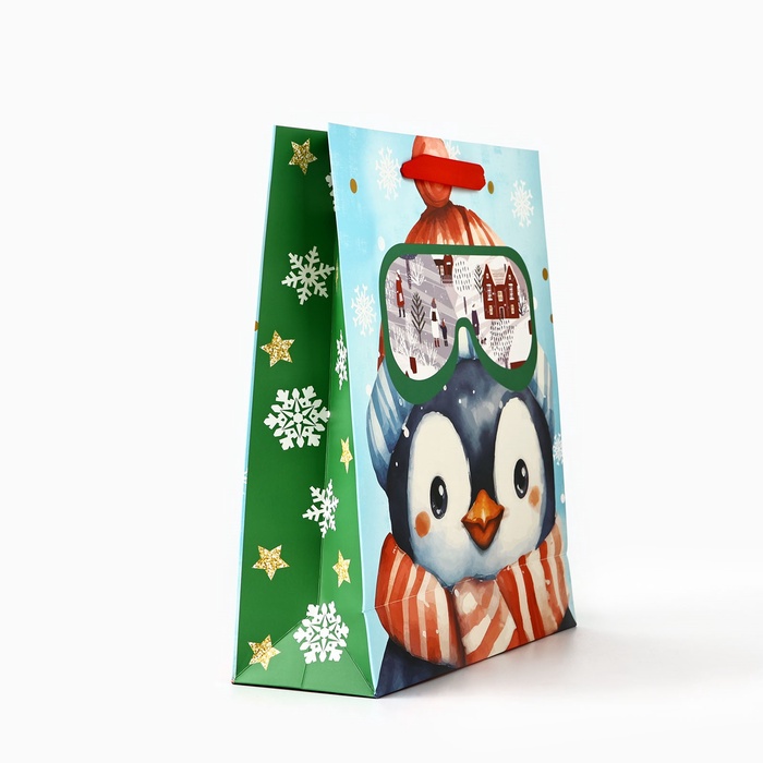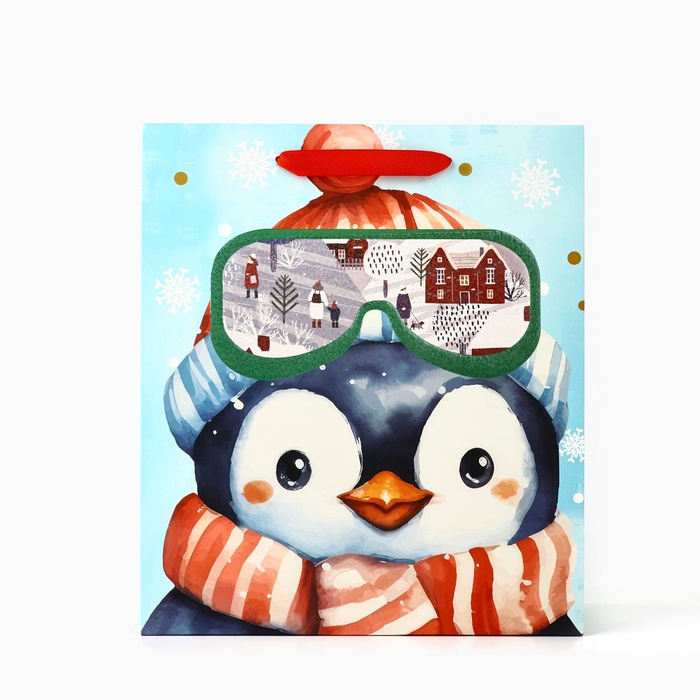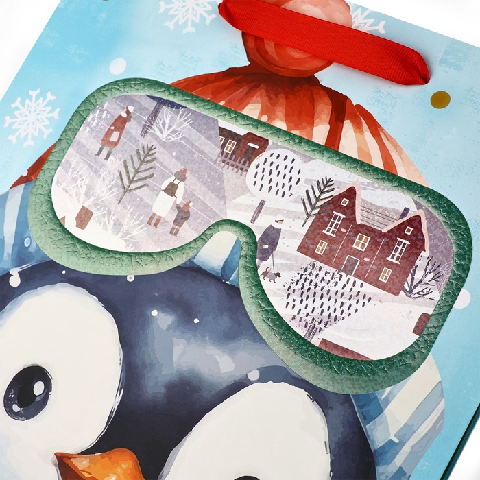 Пакет подарочный новогодний ламинированный «Пингвинёнок», конгрев, M 30 х 26 х 9 см — Характеристики