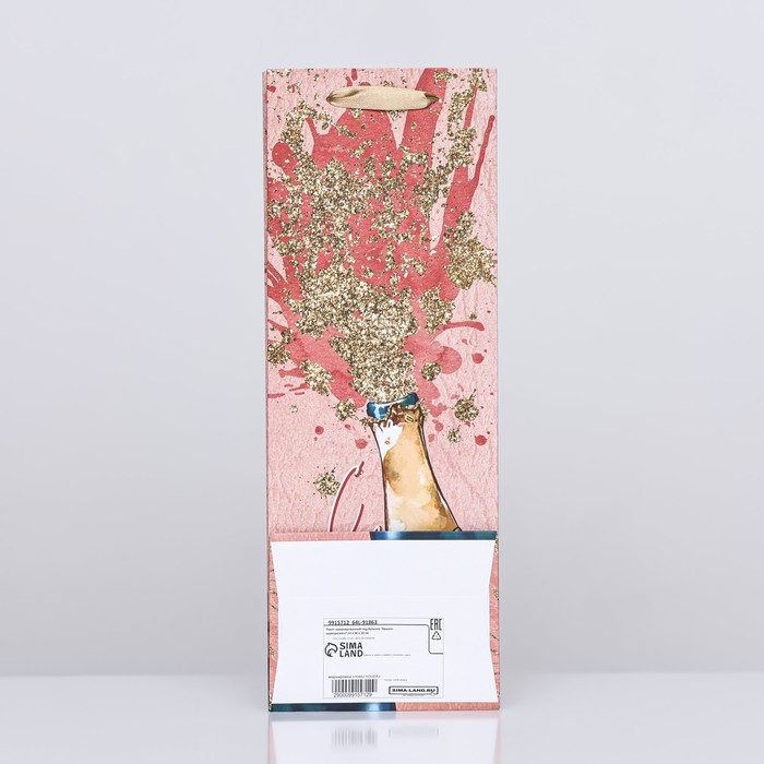 Пакет подарочный новогодний ламинированный под бутылку «Брызги шампанского»,13×36×10 см — Характеристики