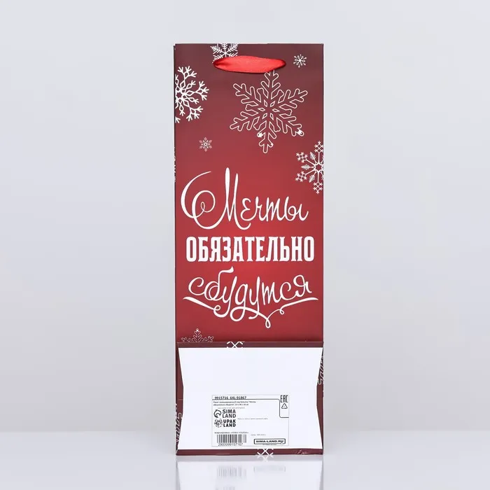 Пакет подарочный новогодний ламинированный под бутылку «Мечты обязательно сбудутся»,13×36×10 см — Характеристики