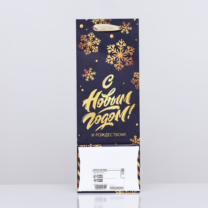 Пакет подарочный новогодний ламинированный под бутылку «Снежинки»,13×36×10 см — Характеристики