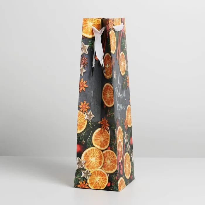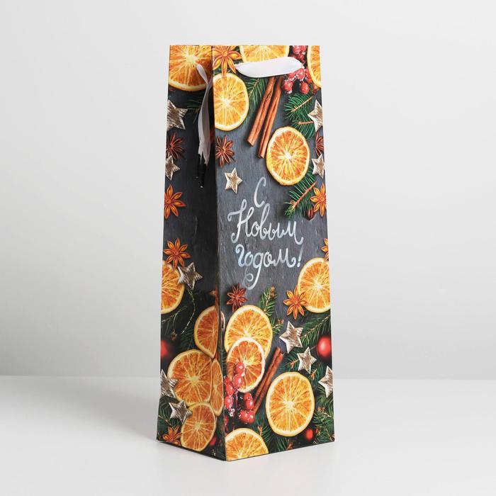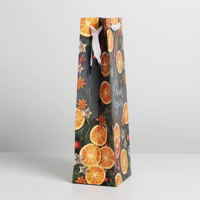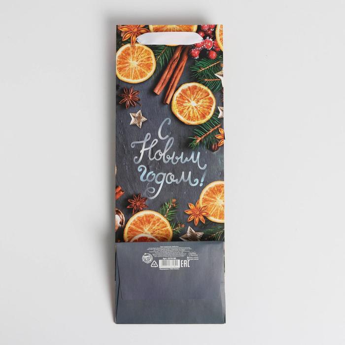 Пакет подарочный новогодний ламинированный под бутылку «Уюта и тепла в новом году», 13×36×10 см — Характеристики
