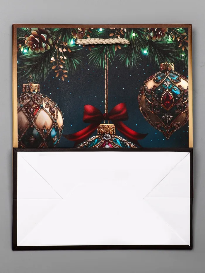 Упаковка, которая говорит за себя: Этот пакет выбирают для тех случаев, когда важно подчеркнуть щедрость и продуманность подарка. Он становится визуальной метафорой праздника, настраивая получателя на радостные эмоции еще до распаковки. После вручения упаковку можно использовать для хранения особенных мелочей или как ежегодный декор. Выберите не просто обертку, а продолжение вашего внимания — упаковку, что обещает радость.