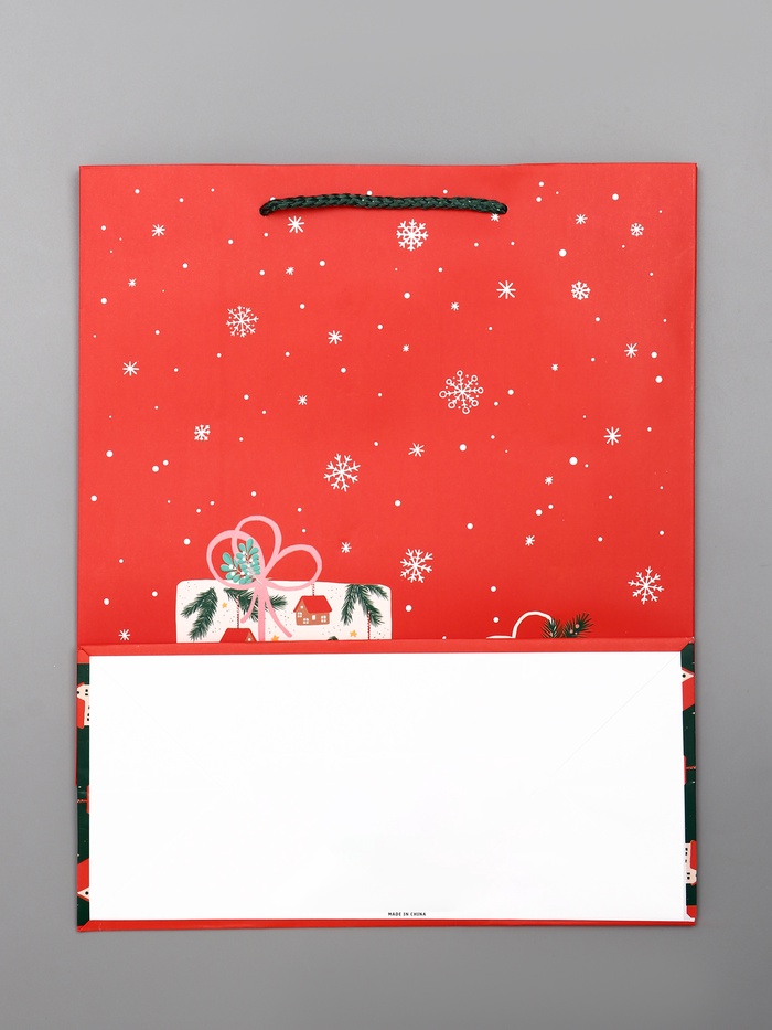 - Готовое праздничное решение: Яркий дизайн с новогодней тематикой не требует дополнительного декора. Пакет сразу создает праздничное настроение и готов к использованию.