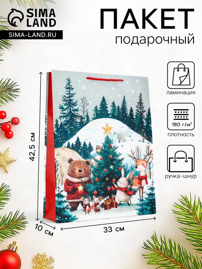 Пакет подарочный новогодний ламинированный, «Подготовка к Новому Году» , 33×10×42.5 см — Характеристики