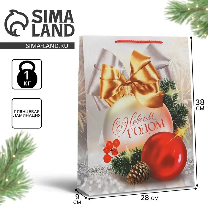 Пакет подарочный новогодний ламинированный «Праздник для тебя», L 28 х 38 х 9 см — Характеристики
