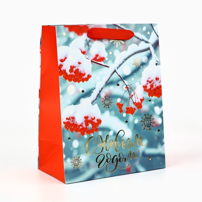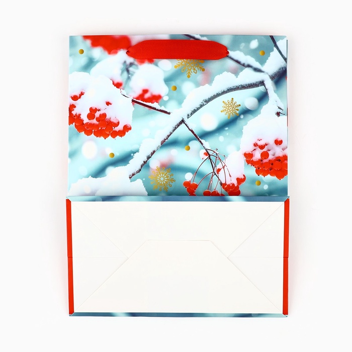 Пакет подарочный новогодний ламинированный «Рябина», MS 23 x 18 х 10 см