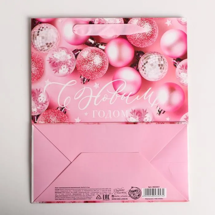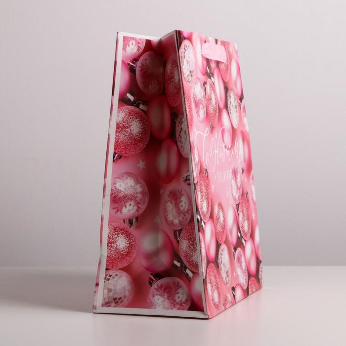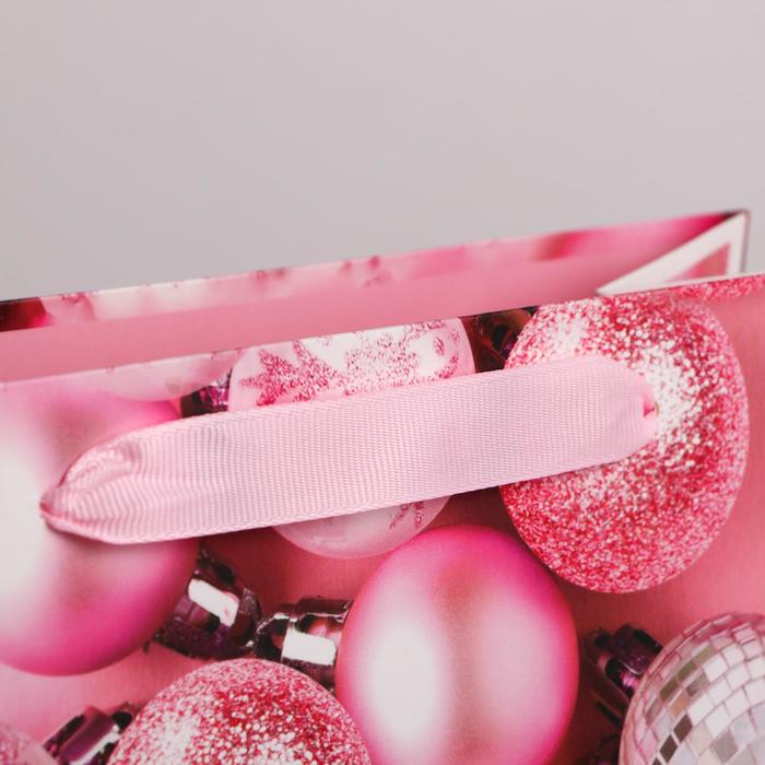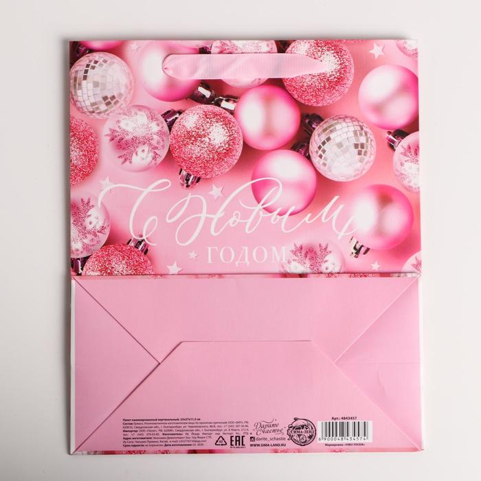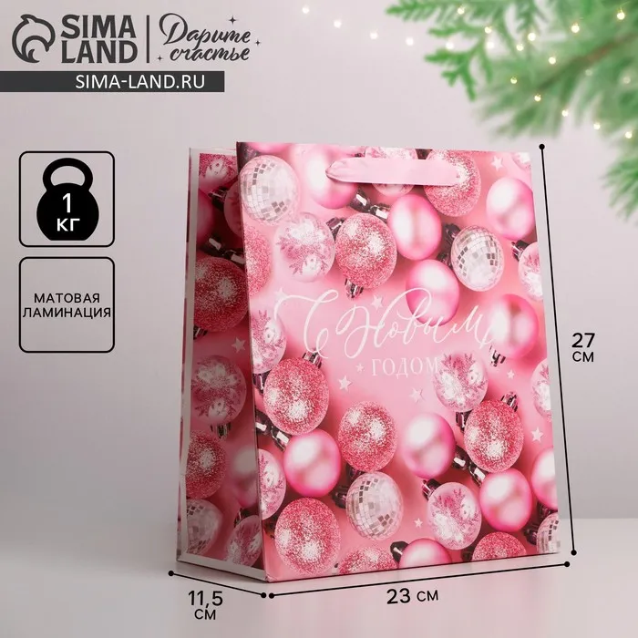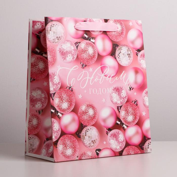 Пакет подарочный новогодний ламинированный «Розовые шарики», ML 23 х 27 х 11.5 см — Характеристики