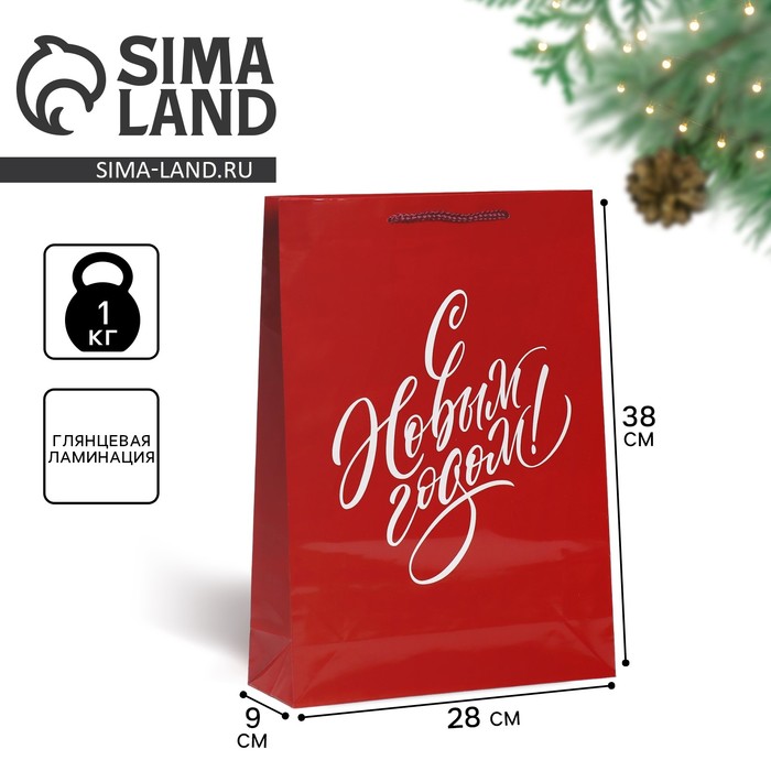 Пакет подарочный новогодний ламинированный «С НГ», L 28 х 38 х 9 см — Характеристики